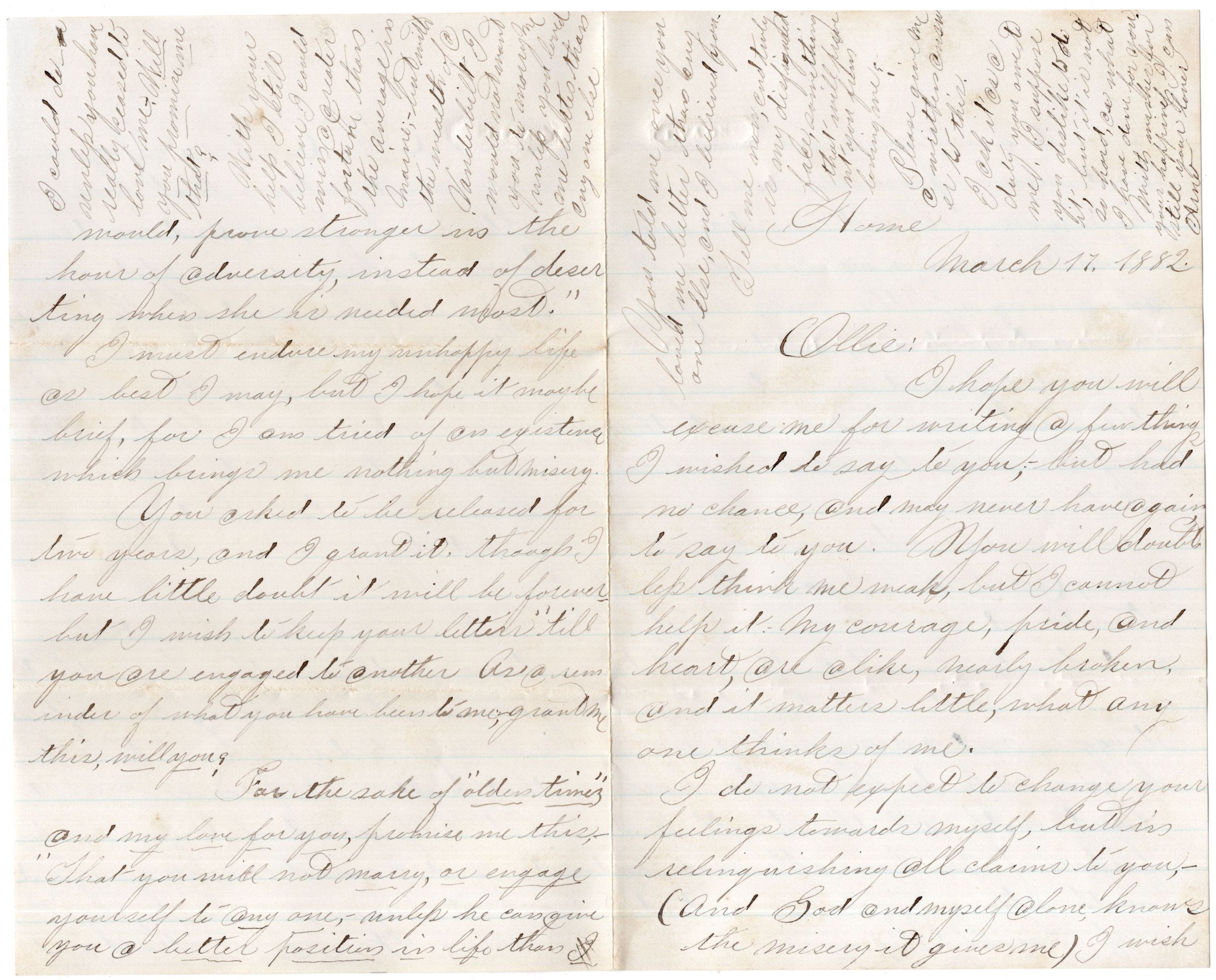 Knight Collection - 1882 Letter; Dated March 17th; Written by Arno Knight to Olive DrinkwaterRelationships