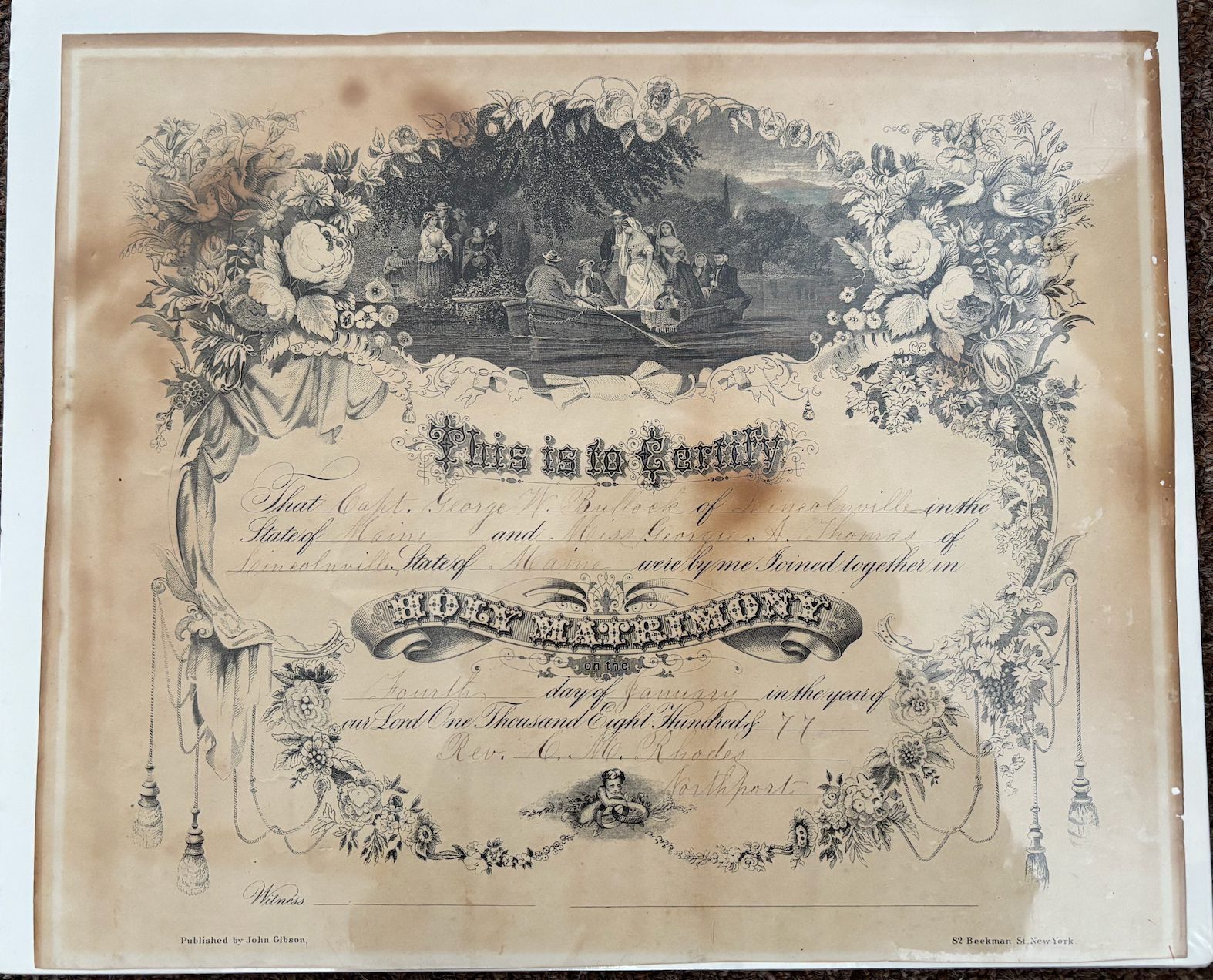 Marriage Certificate of Capt. George W. Bullock & Georgia A. Thomas 1877Entry/Object ID