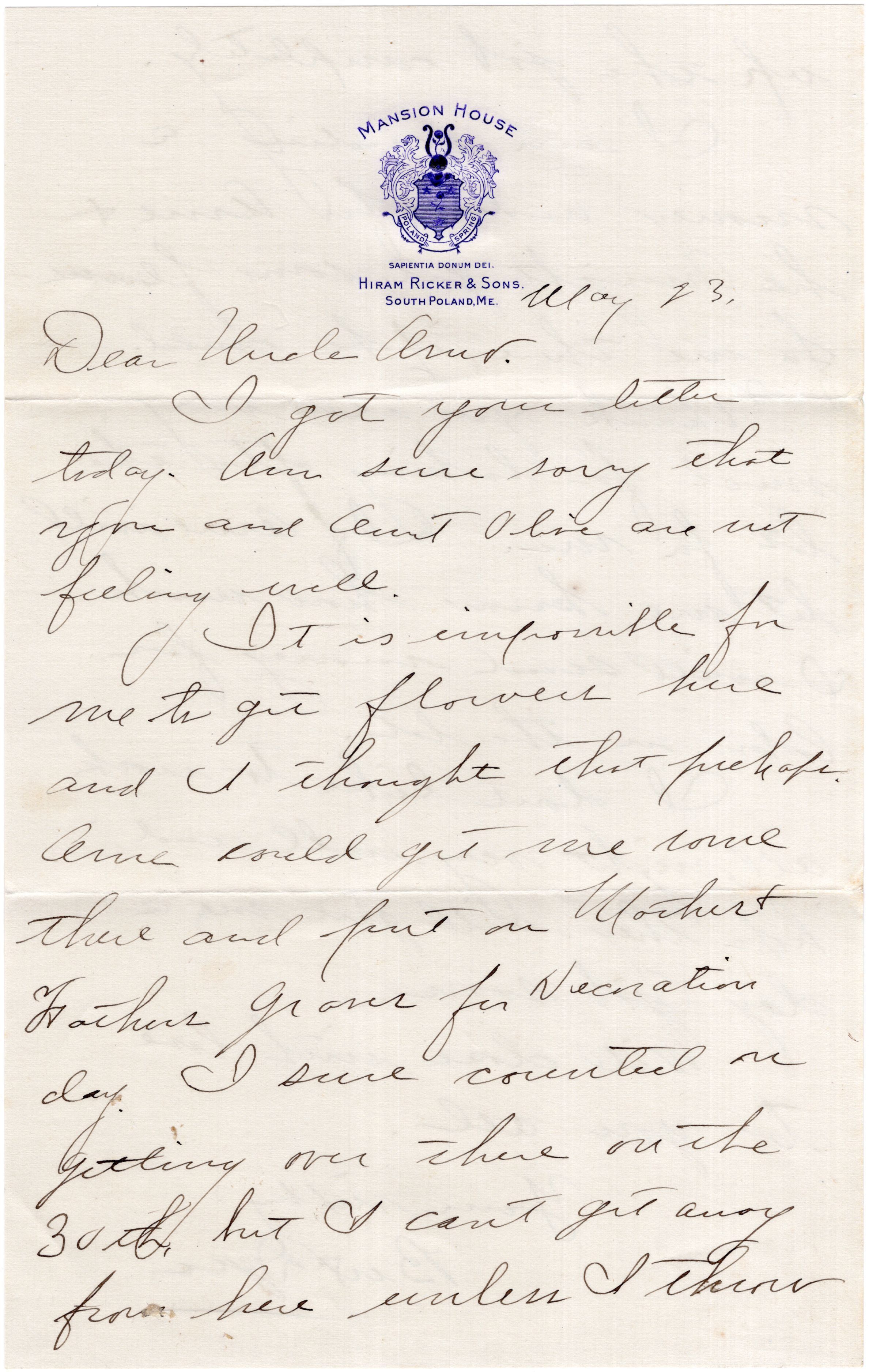 Knight Collection - 1923 Letter; Dated May 23; Written by Herbert Dyer to his uncle Arno Knight; Herbert is the son of Fred and Emma Dyer, Olive's sister.Relationships