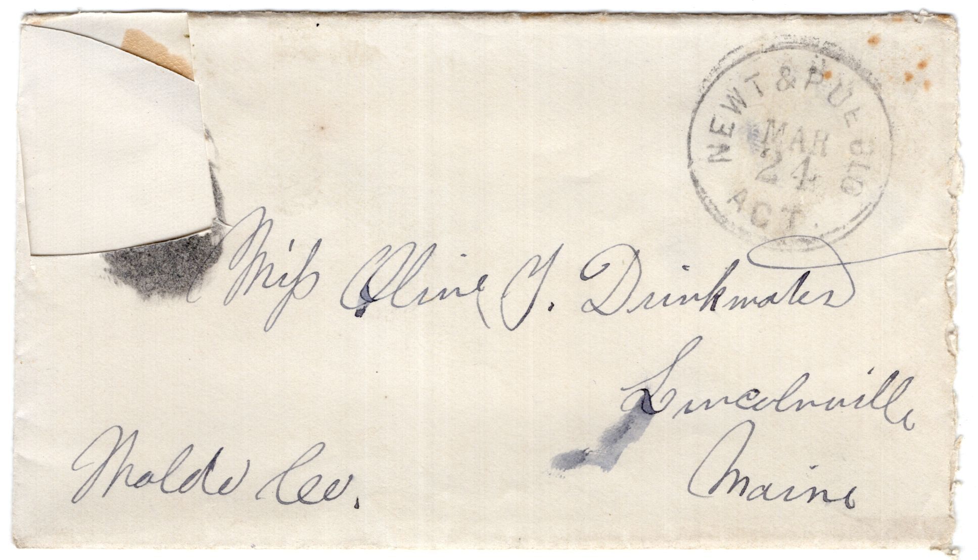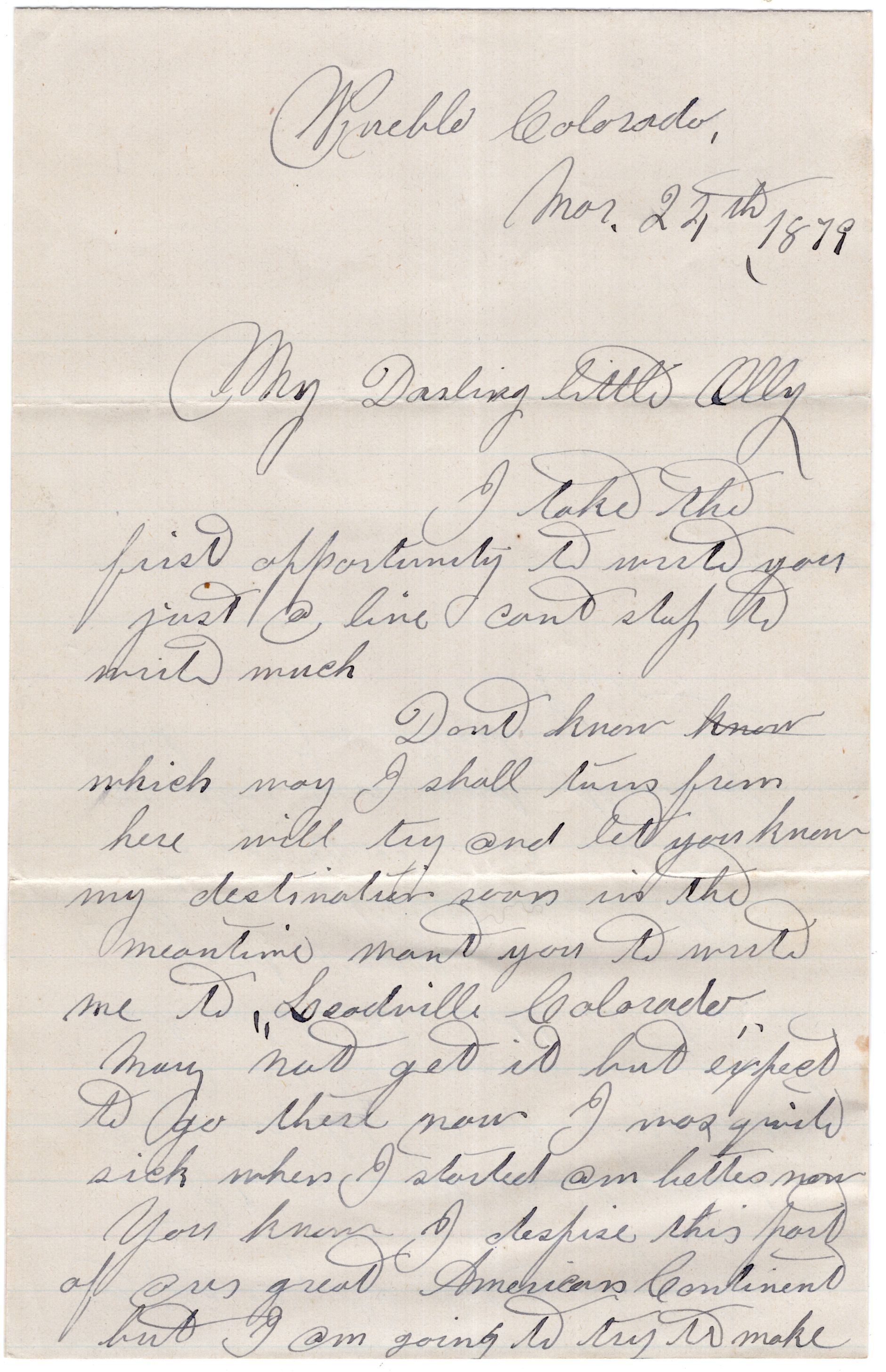 Knight Collection 1879 Letter; Dated March 24th; Written by Arno Knight to Olive Drinkwater; Arno is working out in ColoradoRelationships