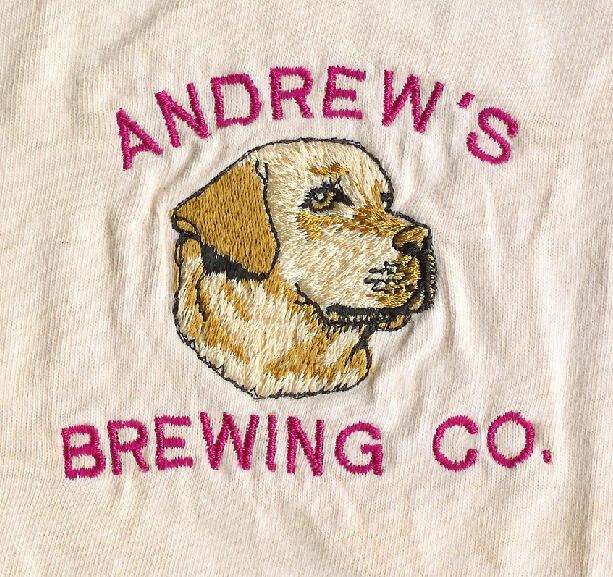 Patch to sew on clothing advertising Andrew's Brewing Co.