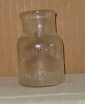 small, clear glass bottle, stopper missing; c. 2 1/2"; Chesebrough Mfg. Co. Vaseline embossed on side