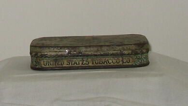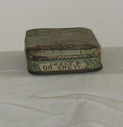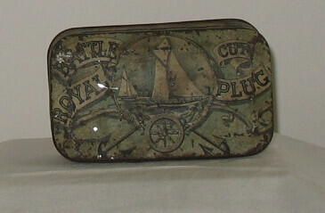 small tobacco tin, 2 1/2 x 4"; Battle Royal Cut Plug