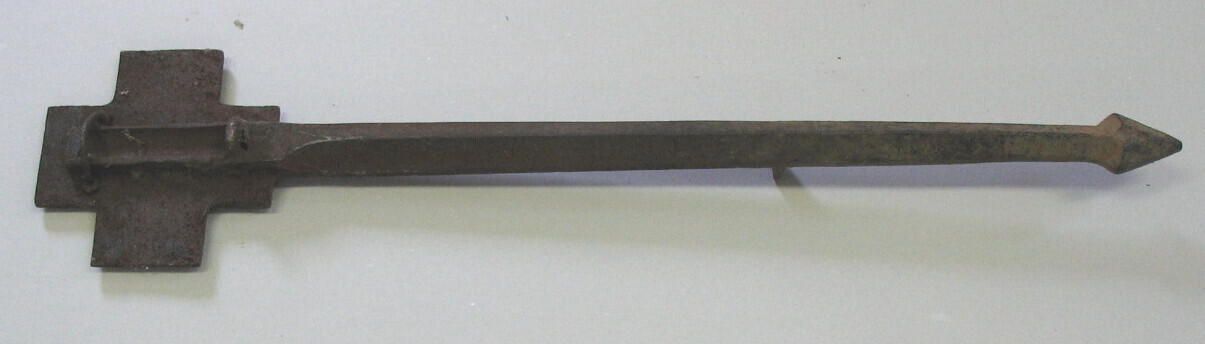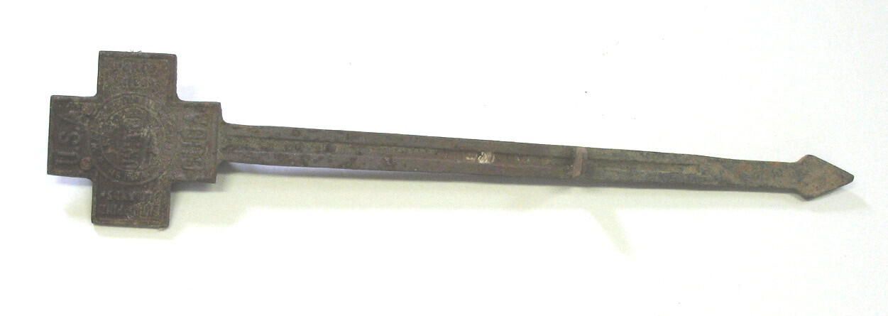 iron flag holder used at grave of a military veteran; marked "USA CUBA PHILIPPINE ISLANDS