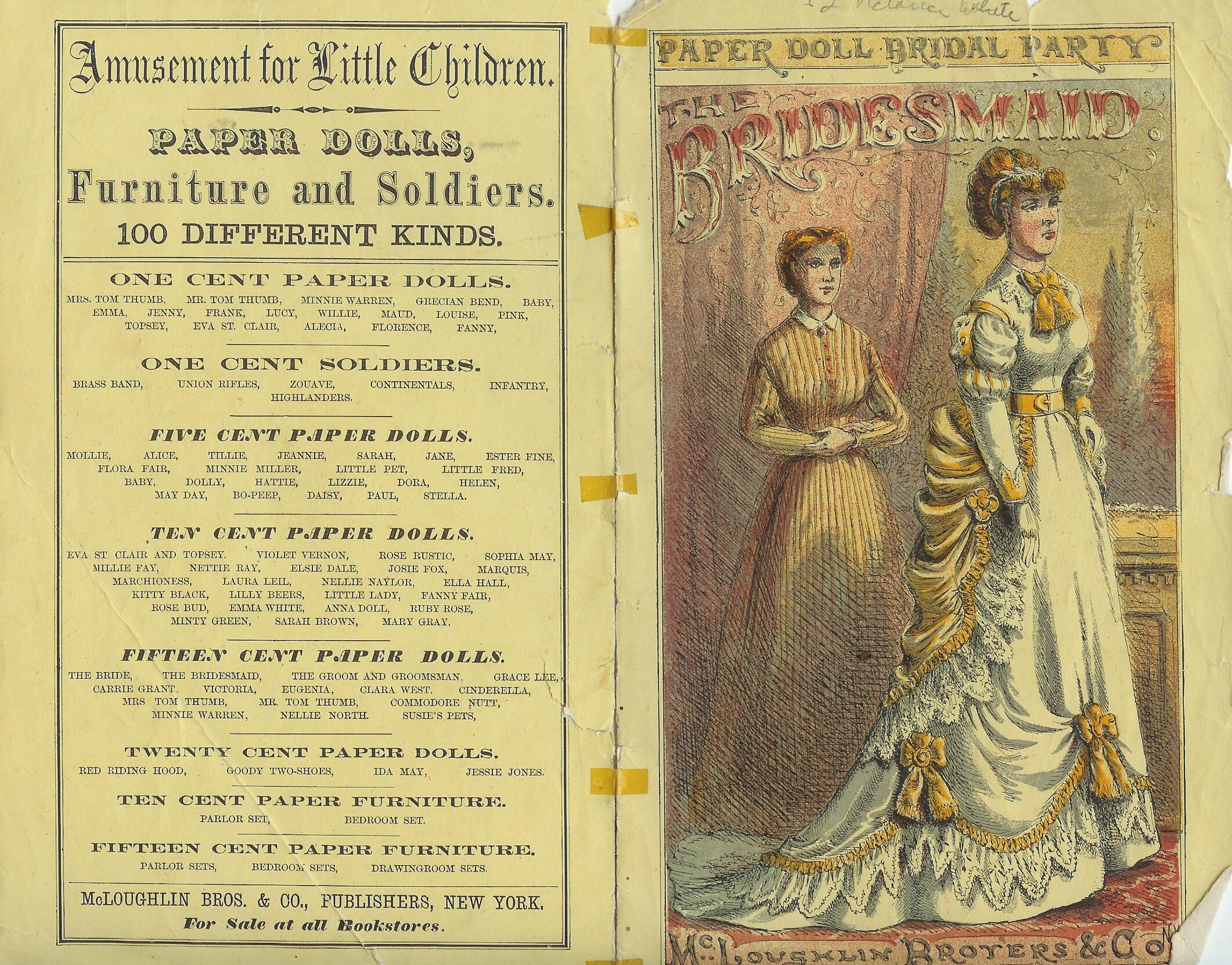 set of paper dolls, front and back, "The Bridesmaid" McLoughlin Brothers & Co "Amusement for Little Children"