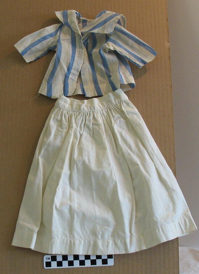 white and blue striped silk sailor-style shirt; white muslin long skirt for a dollRelationships