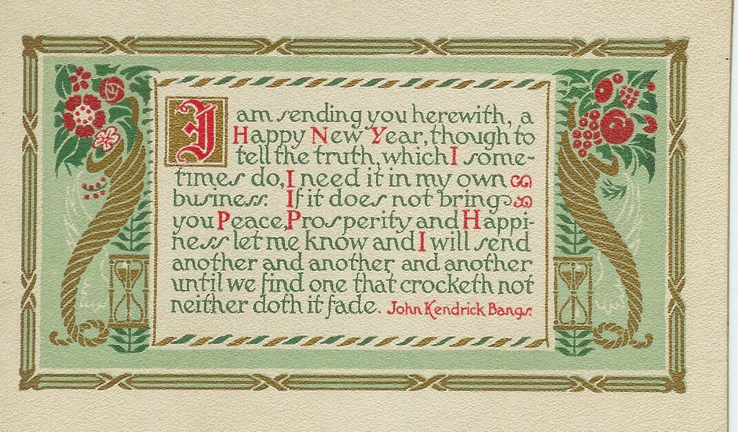 New Year's greeting postcard, 3.25" x 5.5"