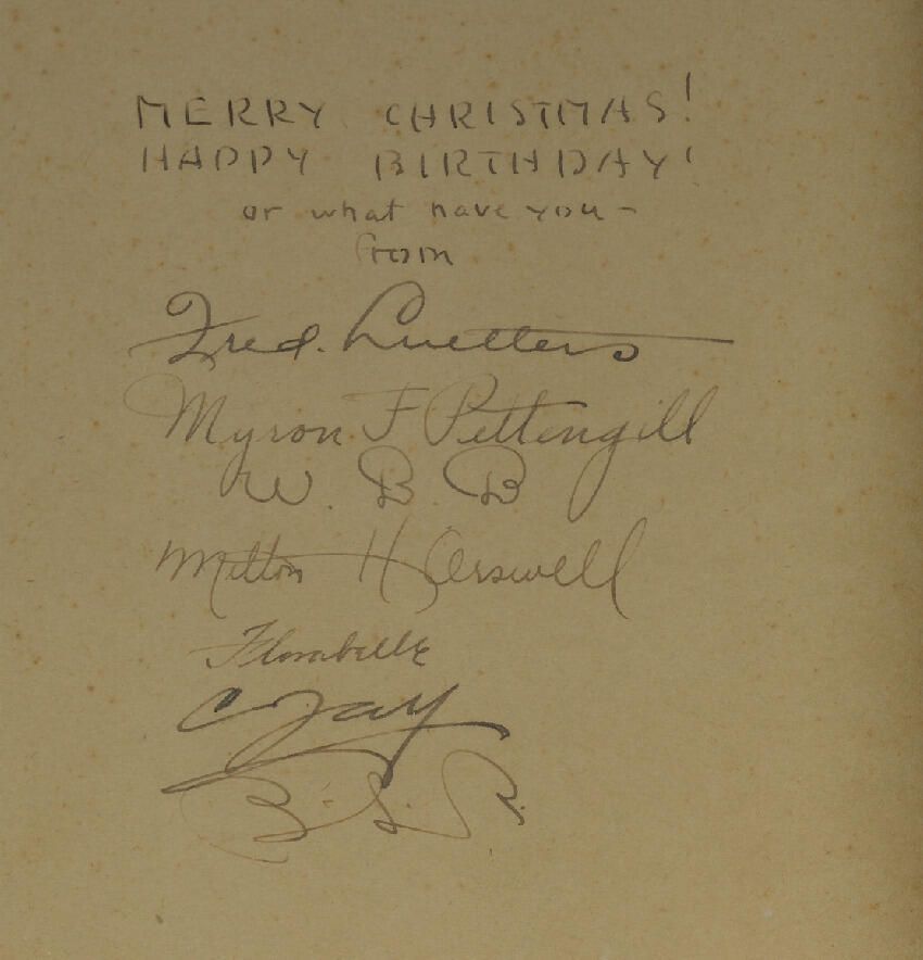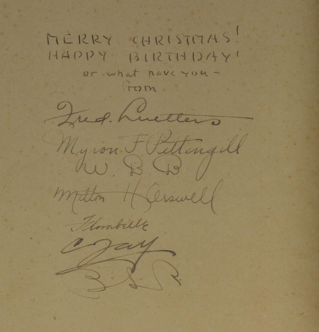 back is inscribed: "Merry Christmas! Happy Birthday! or what have you -- from