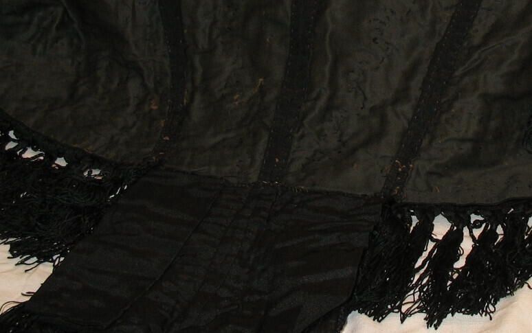 black, silk, heavily tasselled and beaded (black jet beads and silk-covered wooden beads) woman's cape handsewn some moth damage