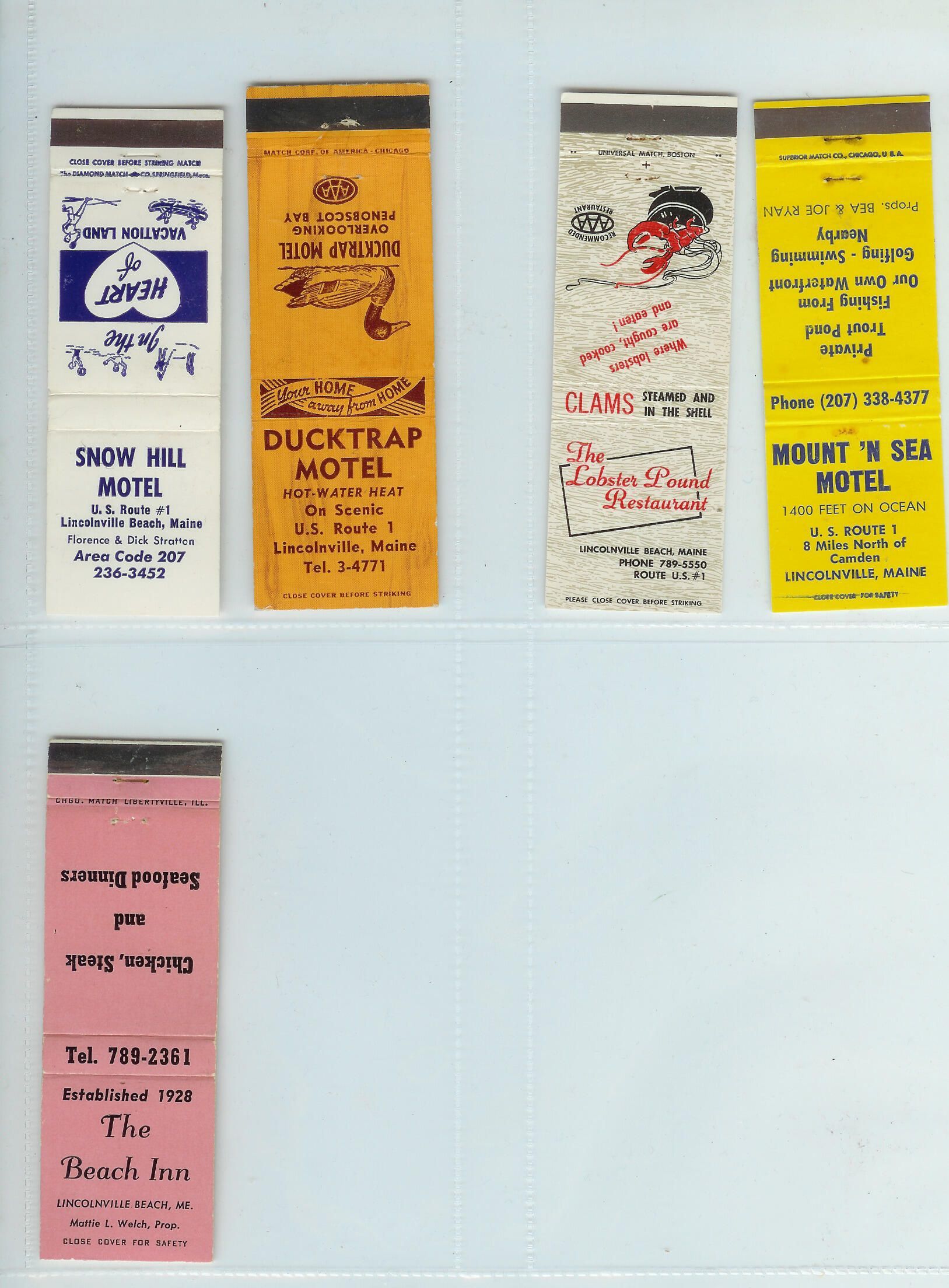 five advertising matchbooks for L'ville businesses gift of Meredith Marcinkewicz