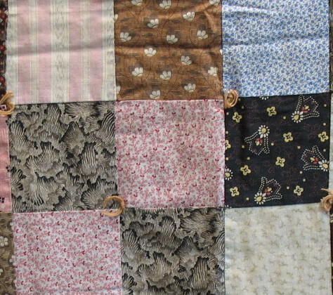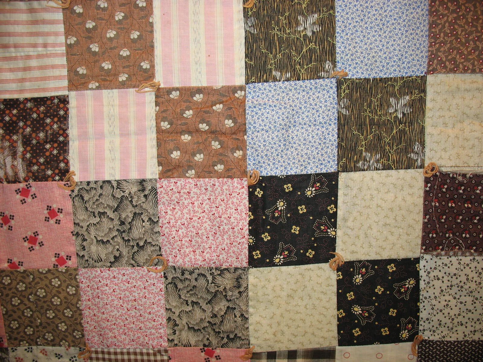 Machine pieced patchwork squares, 2 3/4" finished size each. Quilt had been tied.