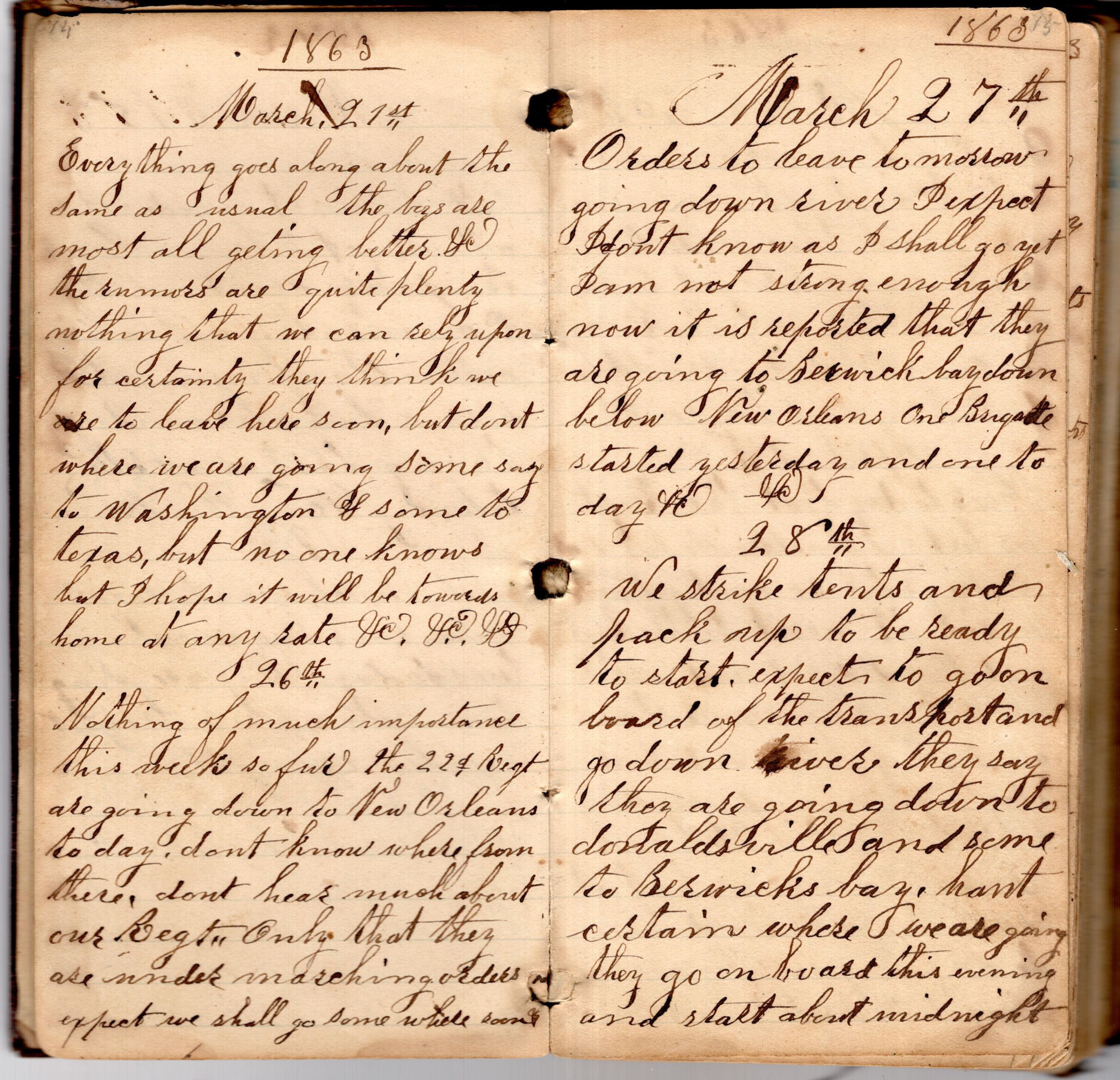 small leather-bound journal kept by Albert Young covering his time of service in the Union Army, 26th Maine Regiment , 1862-1863