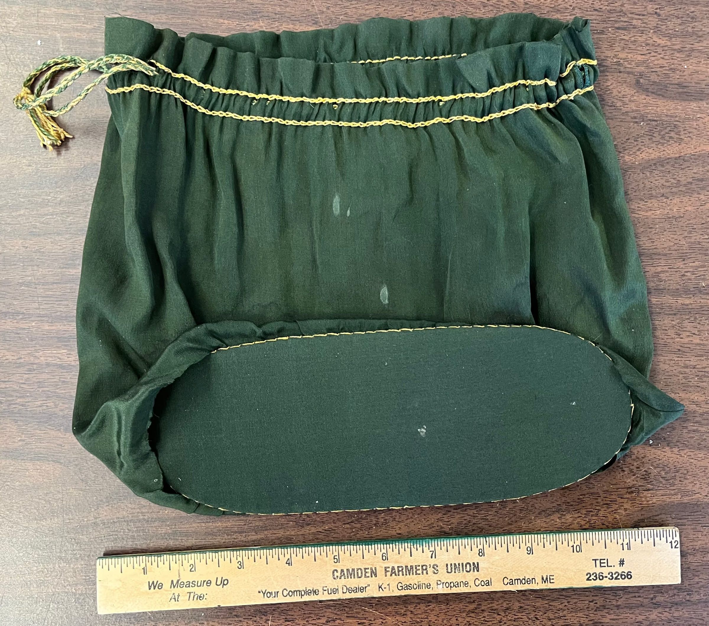 A handmade silk bag with chain stitch emboidery forming a channel for the braided handle