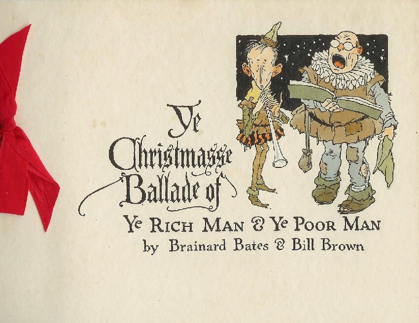 Christmas card used by A.M. Davis Co. as company card "Ye Ballad of ye Rich man and ye poor man" is inside card