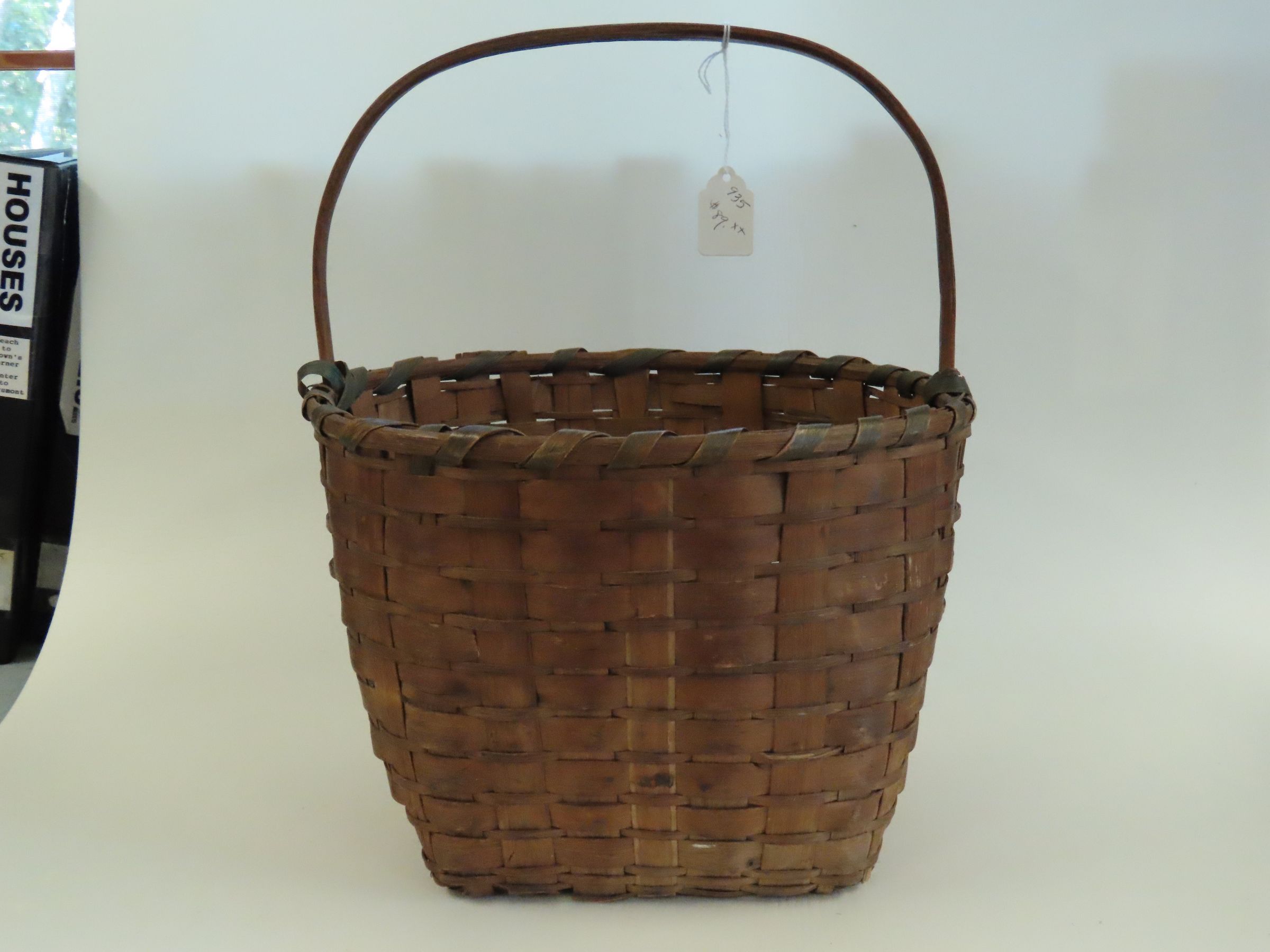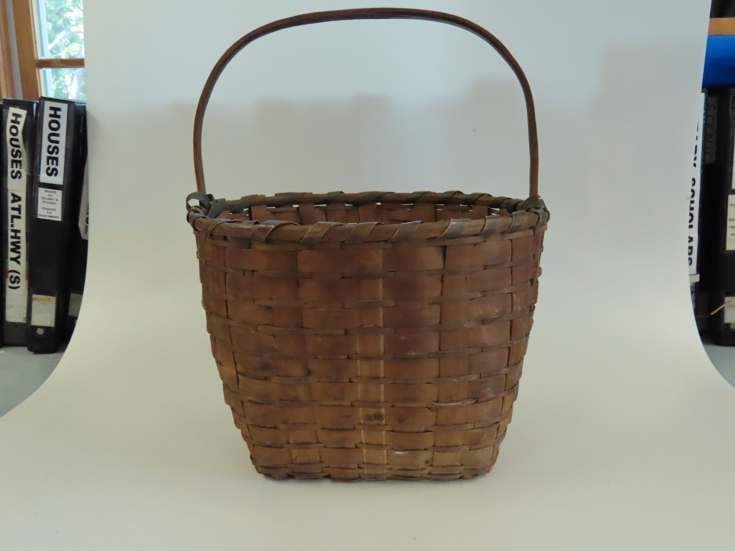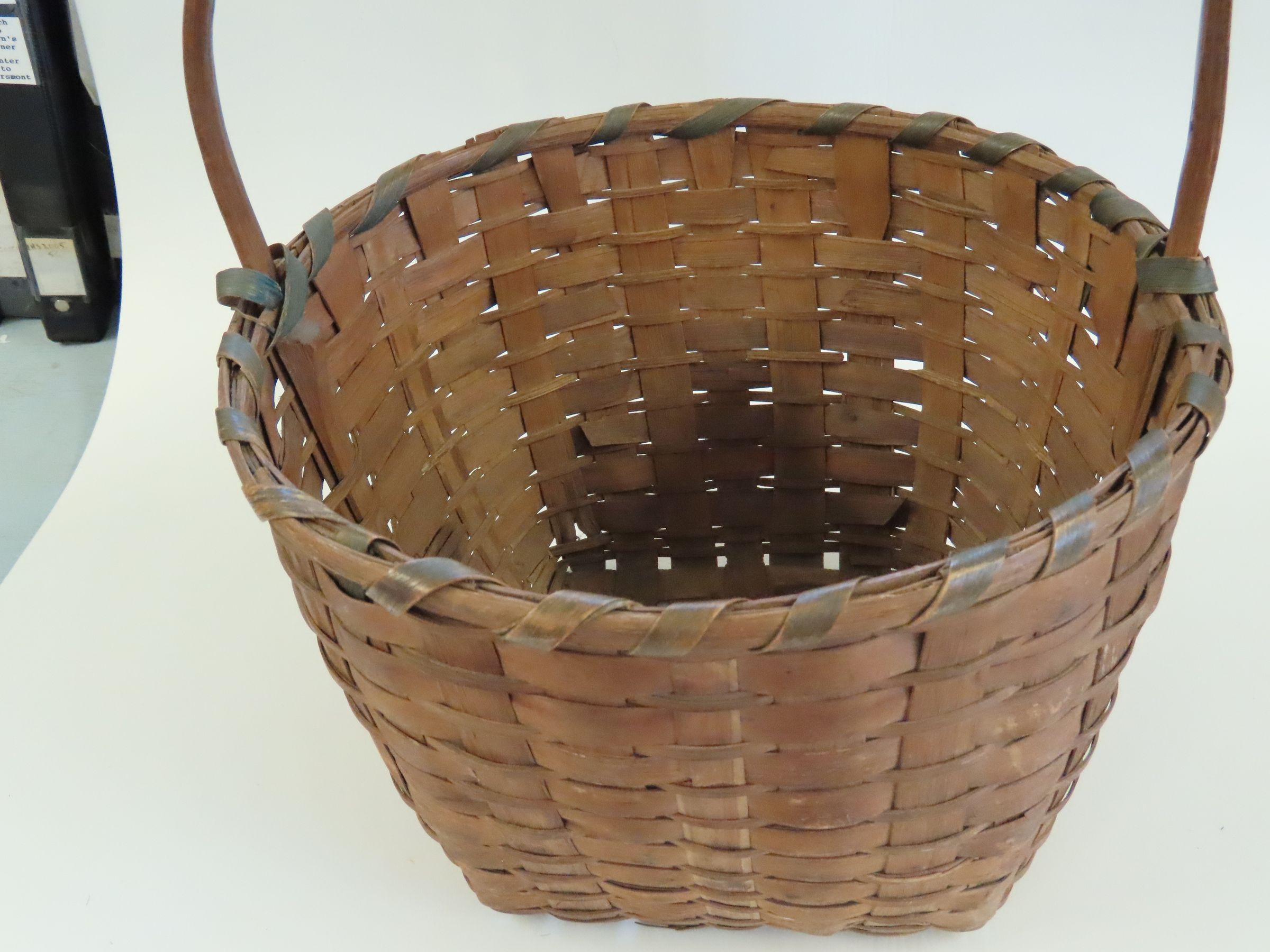 Large Woven Basket with Handle, made of Brown Ash, circa 1880