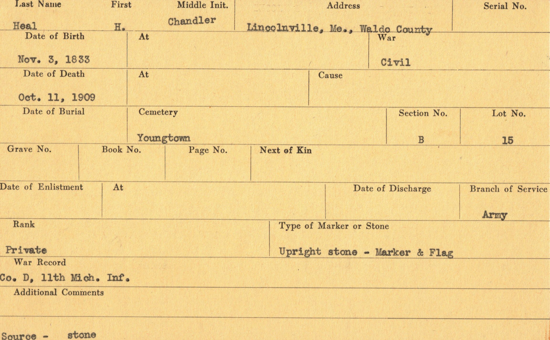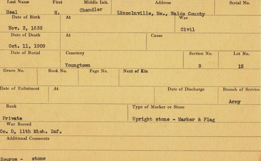 Military records of Chandler H. Heal who served in the Civil War.Relationships
