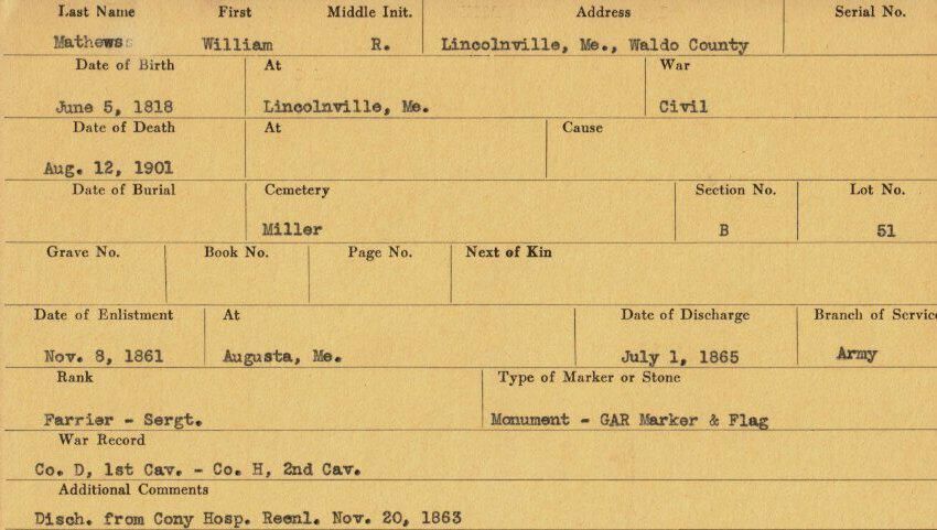 Military records for William R. Mathews who served in the Civil War.Relationships
