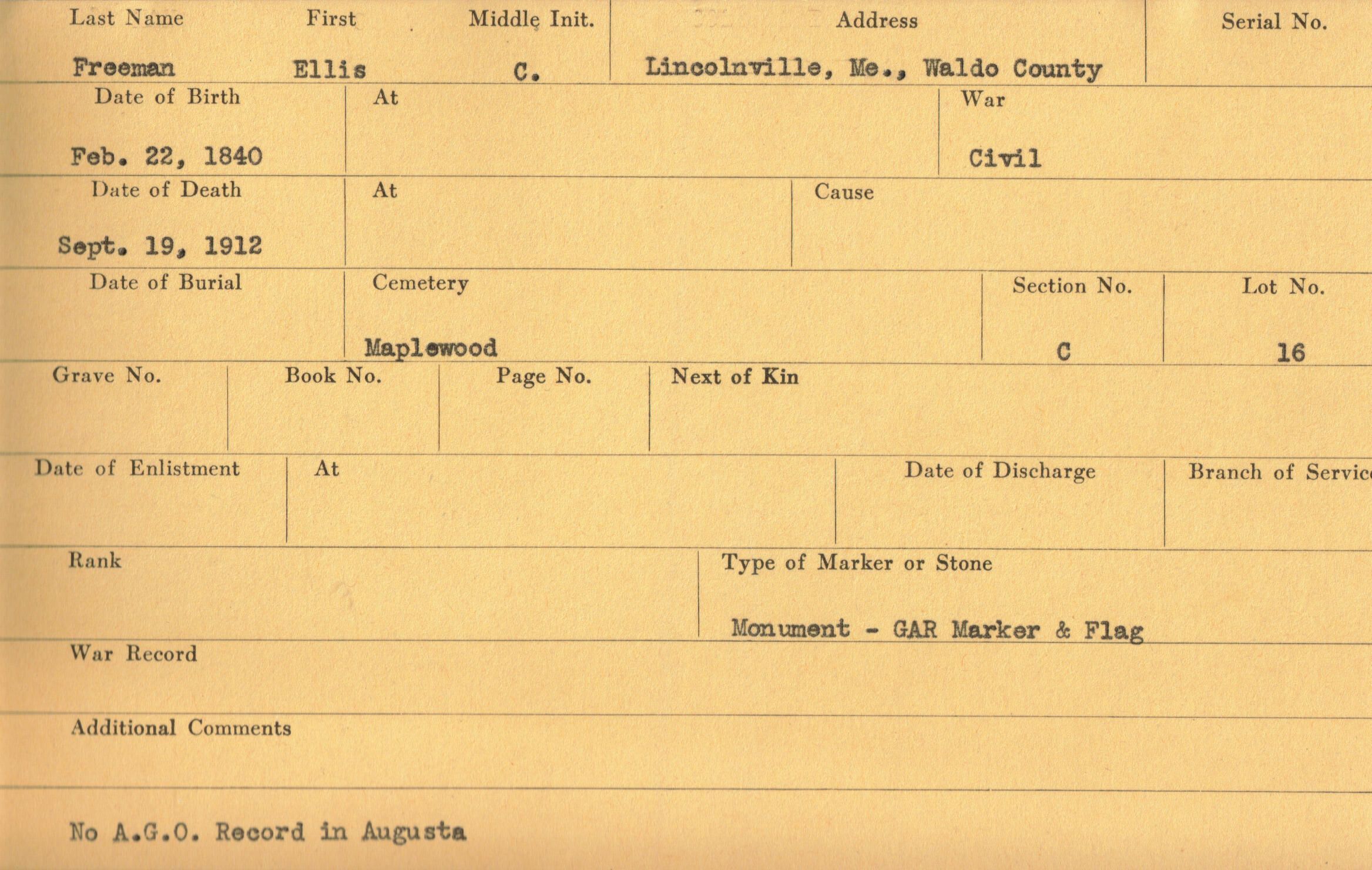 Military records of Ellis C. Freeman who served in the Civil War.Relationships