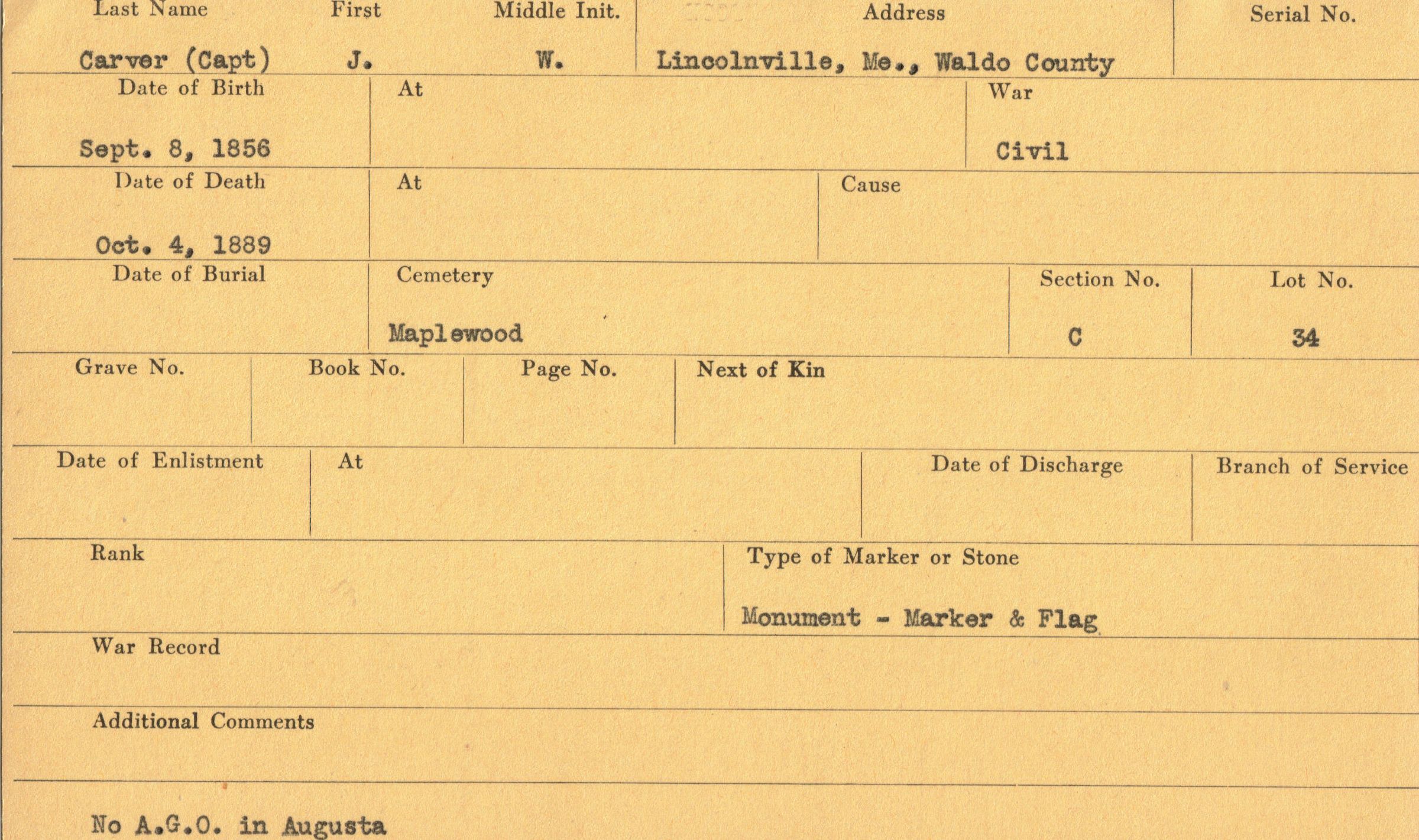 Military records of Captain J. W. Carver who served in the Civil War.Relationships