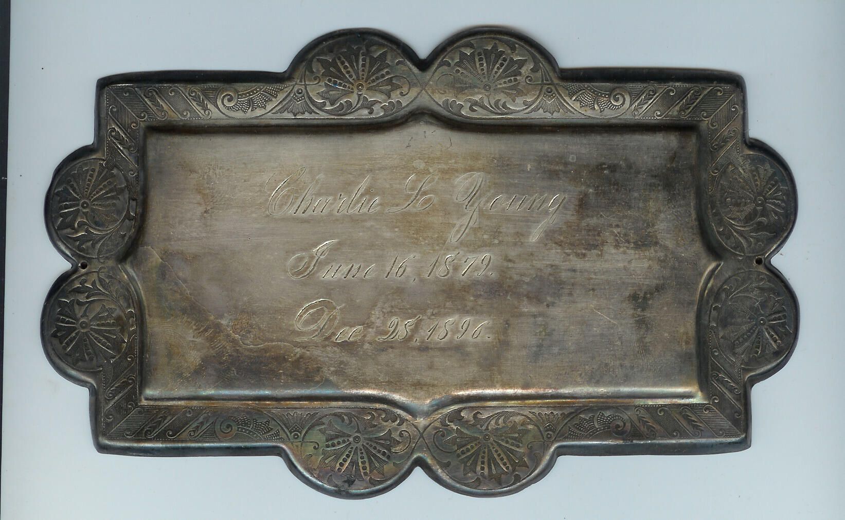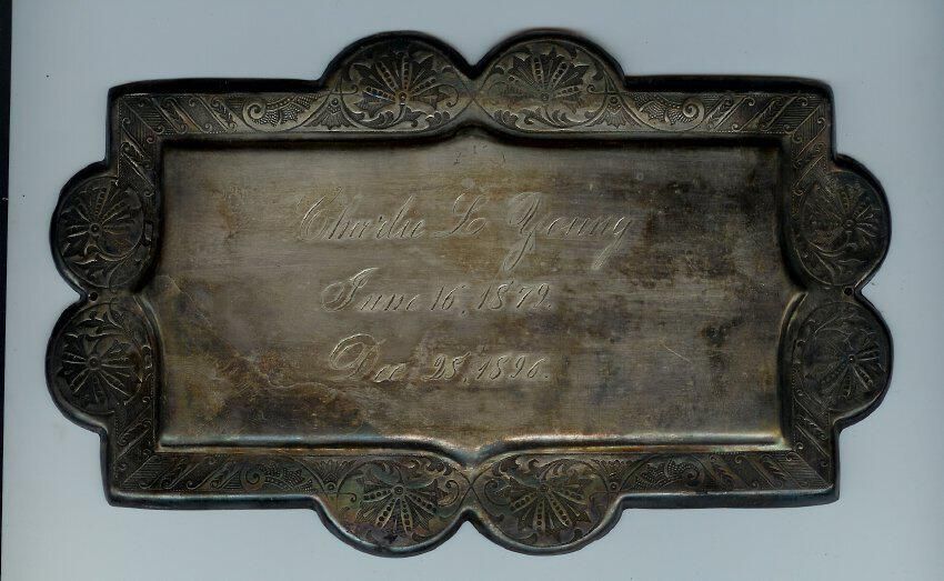 Metal Plaque with birth and death dates of Charlie L. Young.