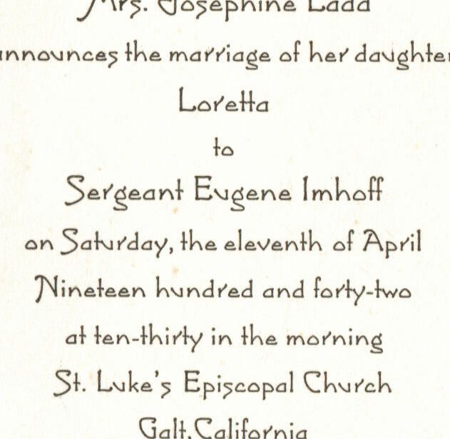 Mrs. Josephine Ladd announces the marriage of her daughter Loretta to Sergeant Eugene Imhoff.Relationships