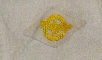 yellow "ruptured duck" patch sewn on right breast indicating Honorable DischargeRelationships