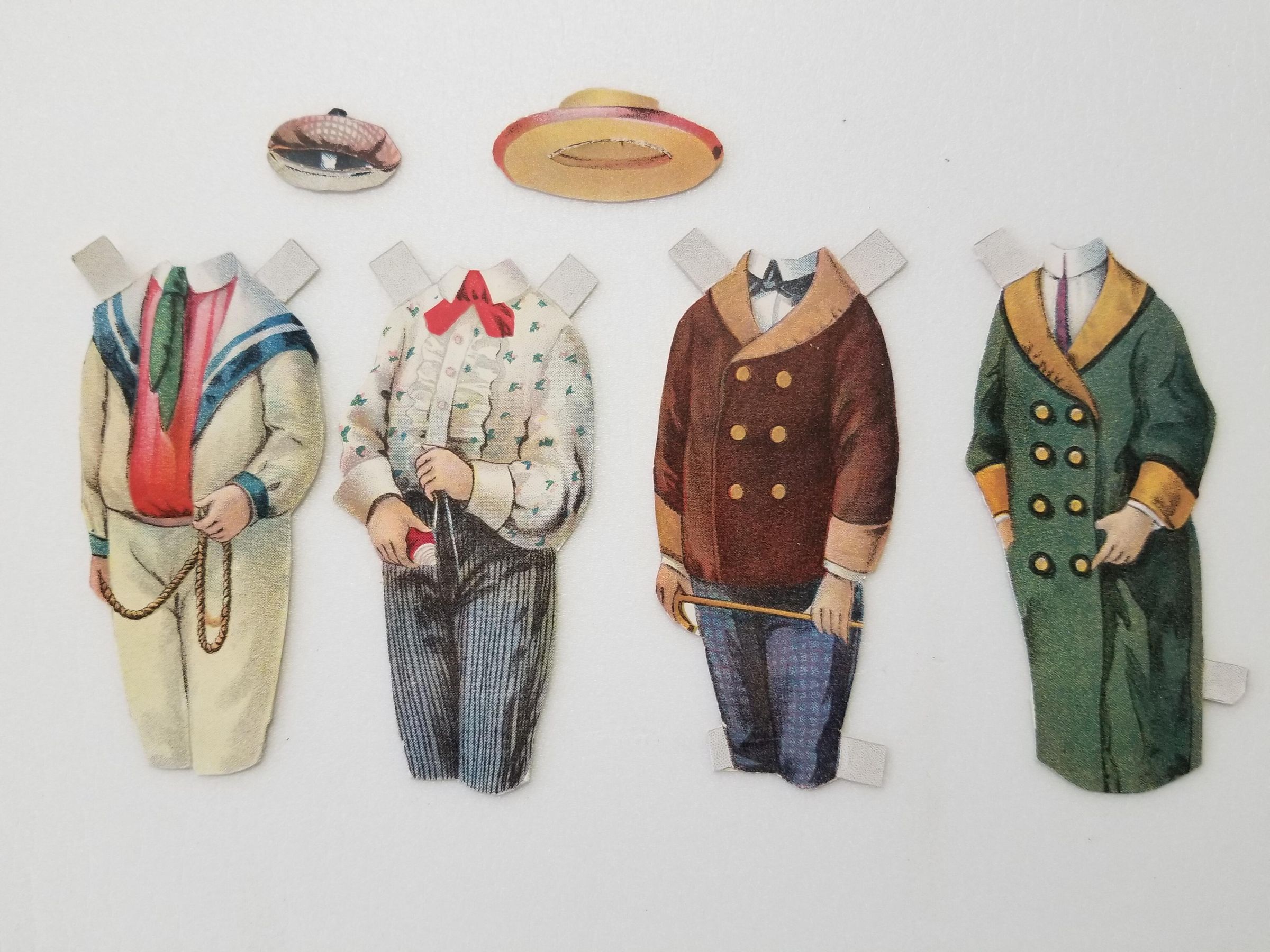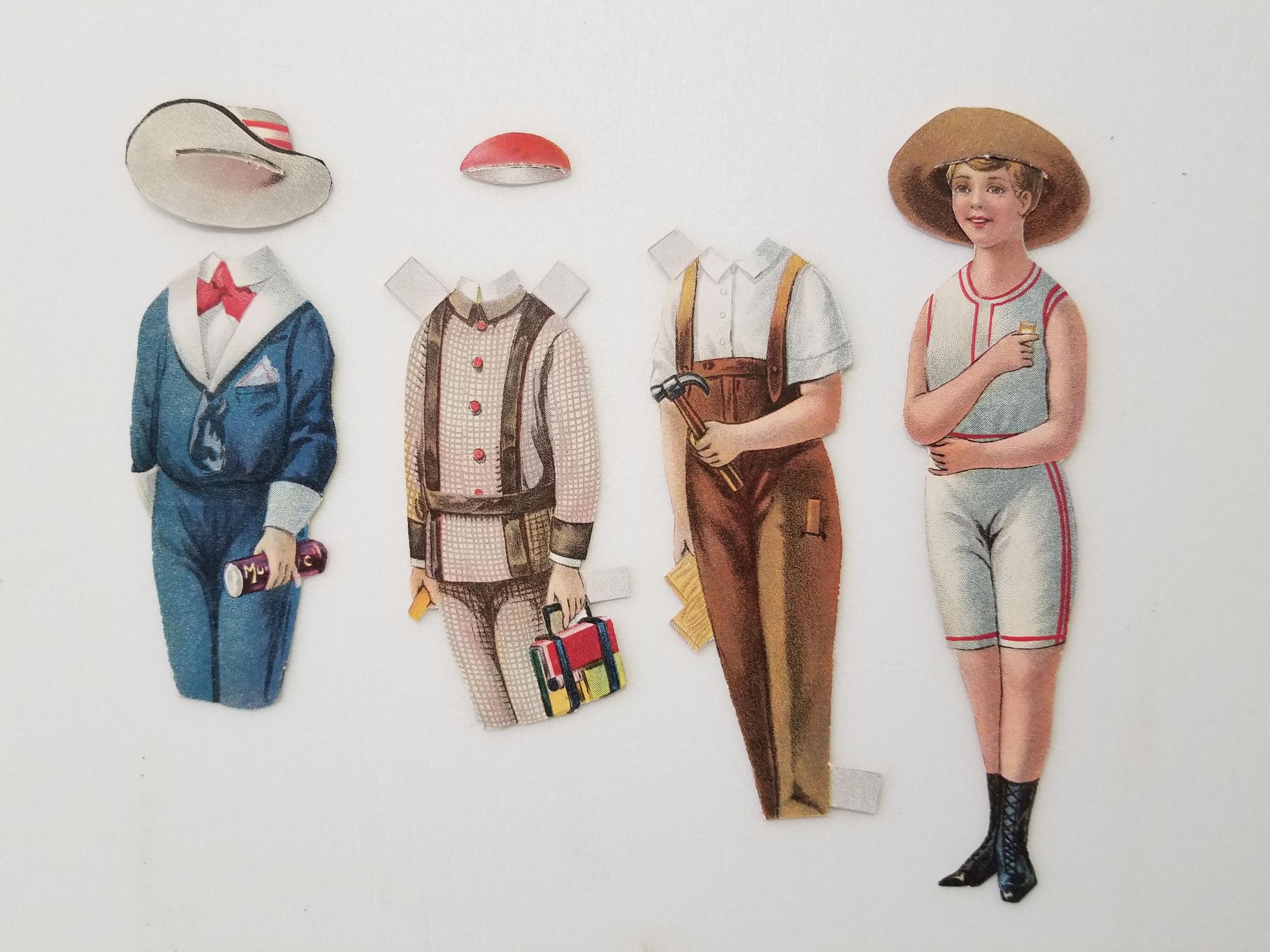 boy paper doll and clothes, cut out along with envelope: Booby prize at Halloween Party at Maude [Carrolls?] Oct. 31, 1910 series of initials: party guests?