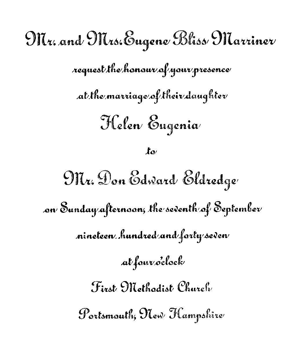 Wedding announcement for Helen Eugenia Marriner and Don Edward Eldredge.Relationships