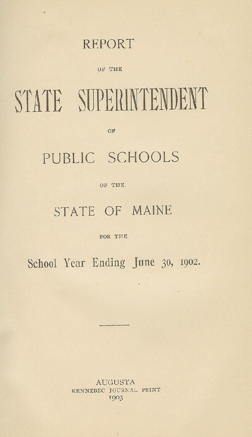 Report of the State Superintendent of public schools of the state of Maine. Hard bound book with 91 indexed pages.