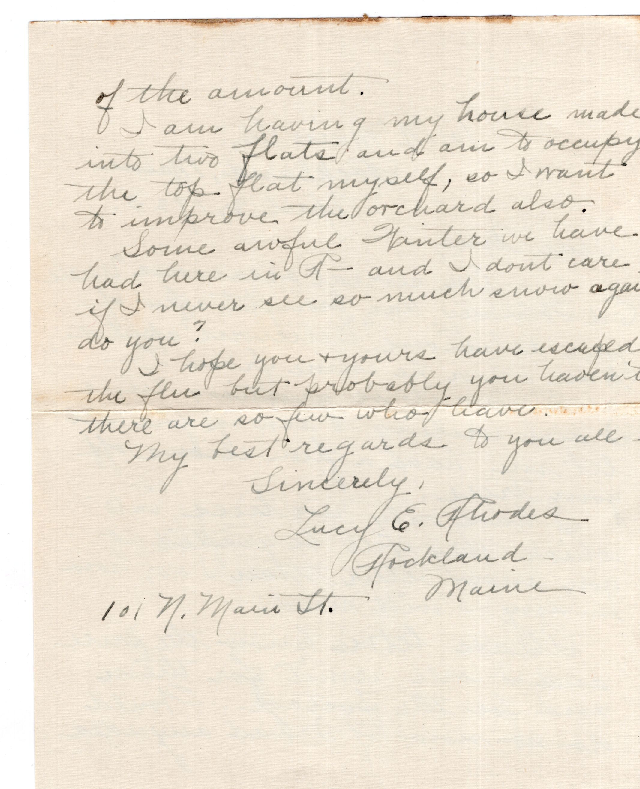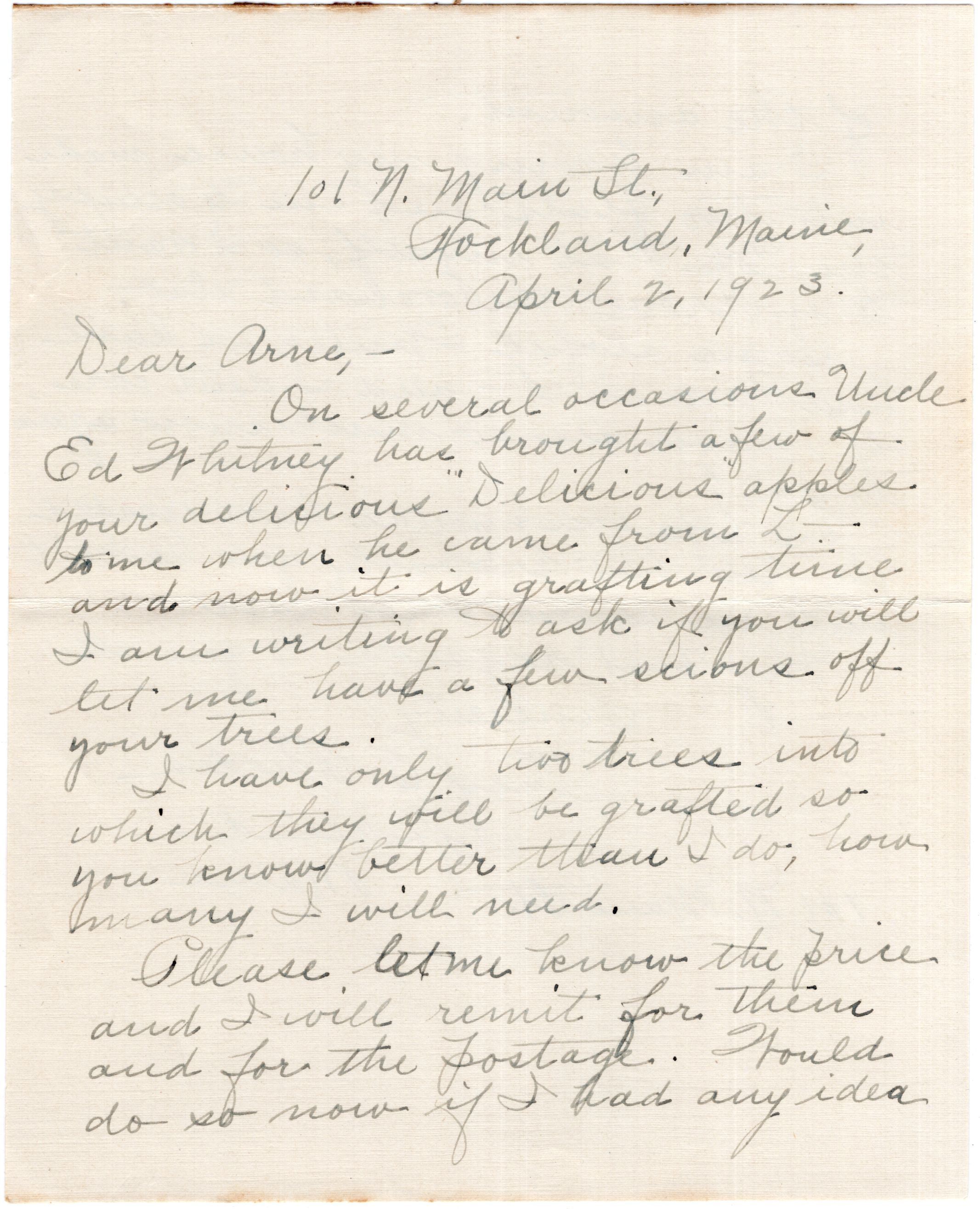 Knight Collection - 1923 Letter; Dated April 2; Written by Lucy Rhodes to her cousin Arne KnightRelationships