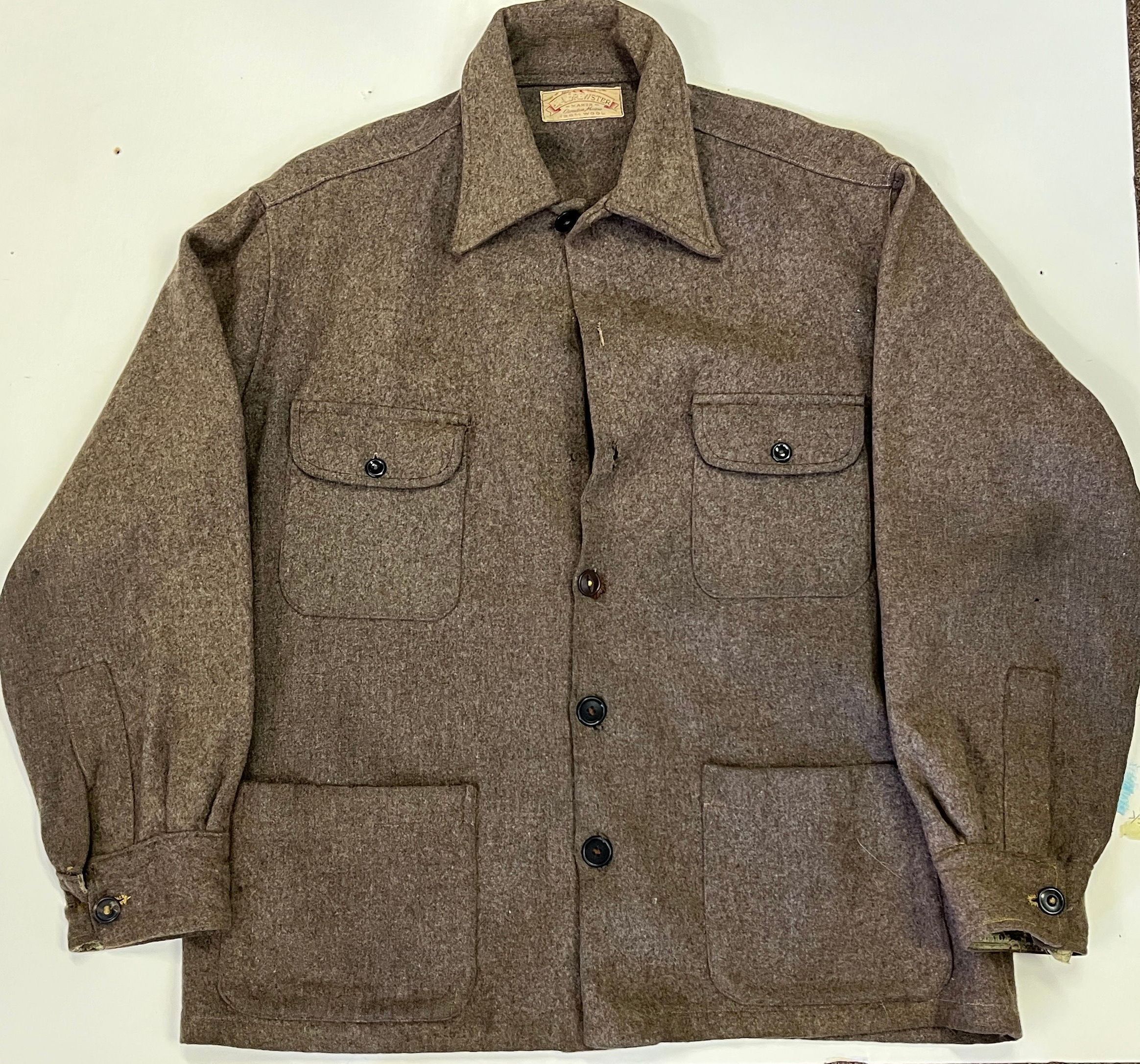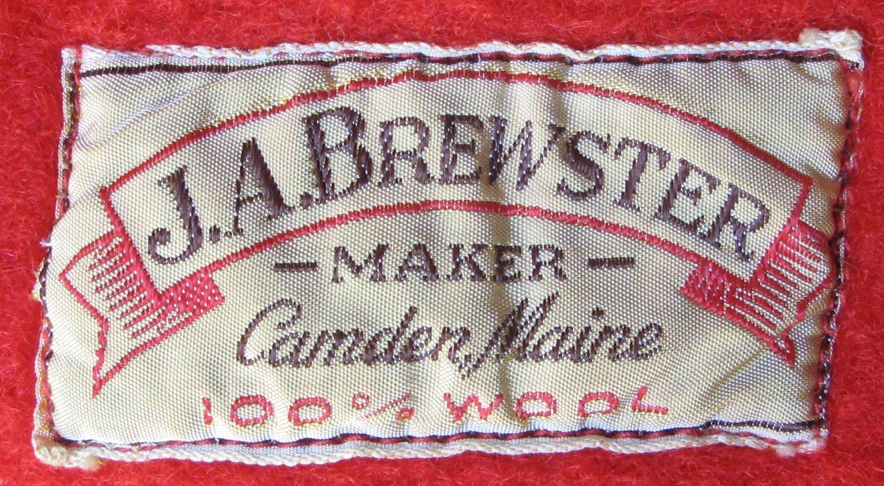 100% wool jacket with label: J.A. Brewster, Maker, Camden,Maine