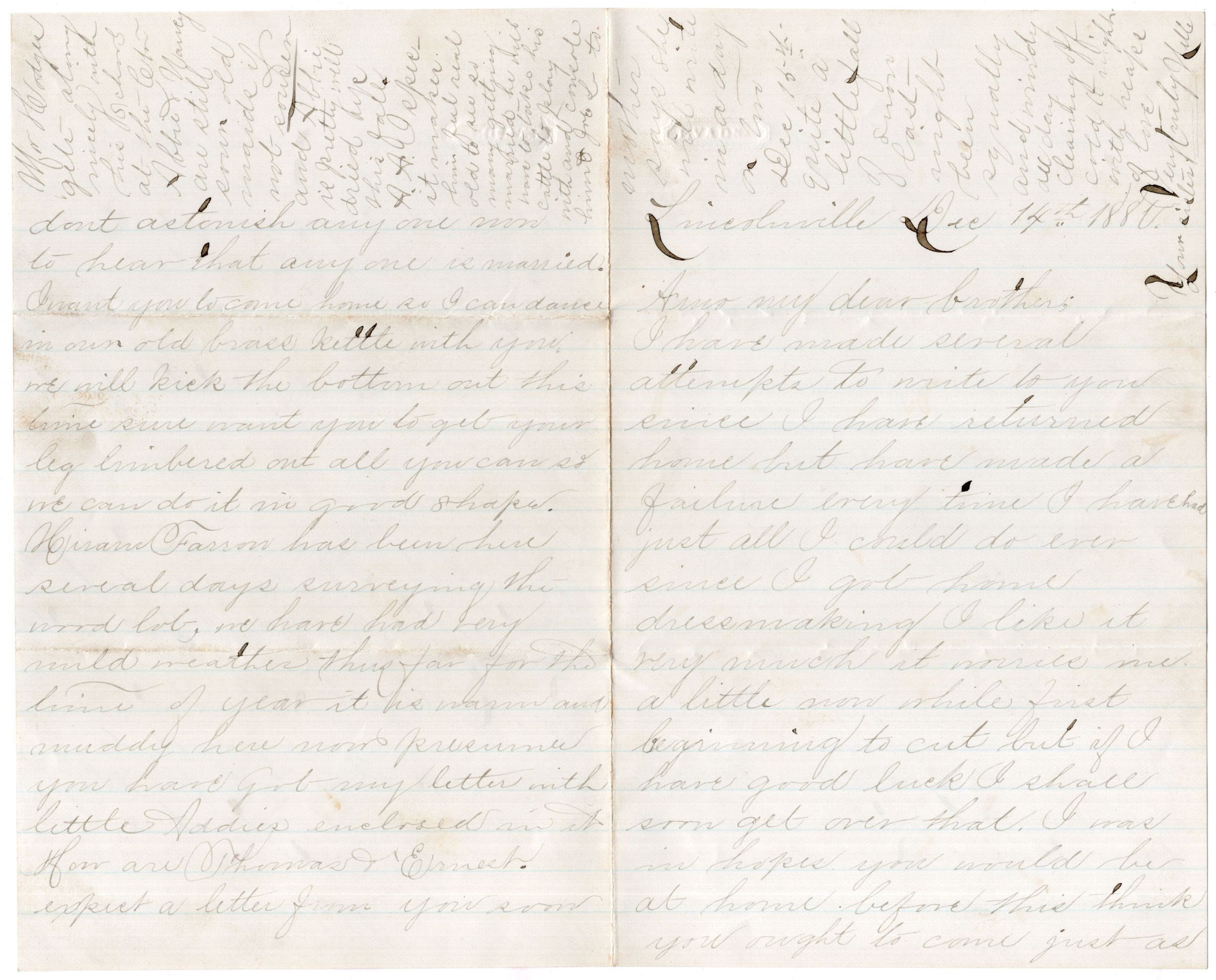 Knight Collection - 1881 Letter; Dated December 14th; Written by Nellie Knight to her brother Arno Knight; Arno is working in Colorado