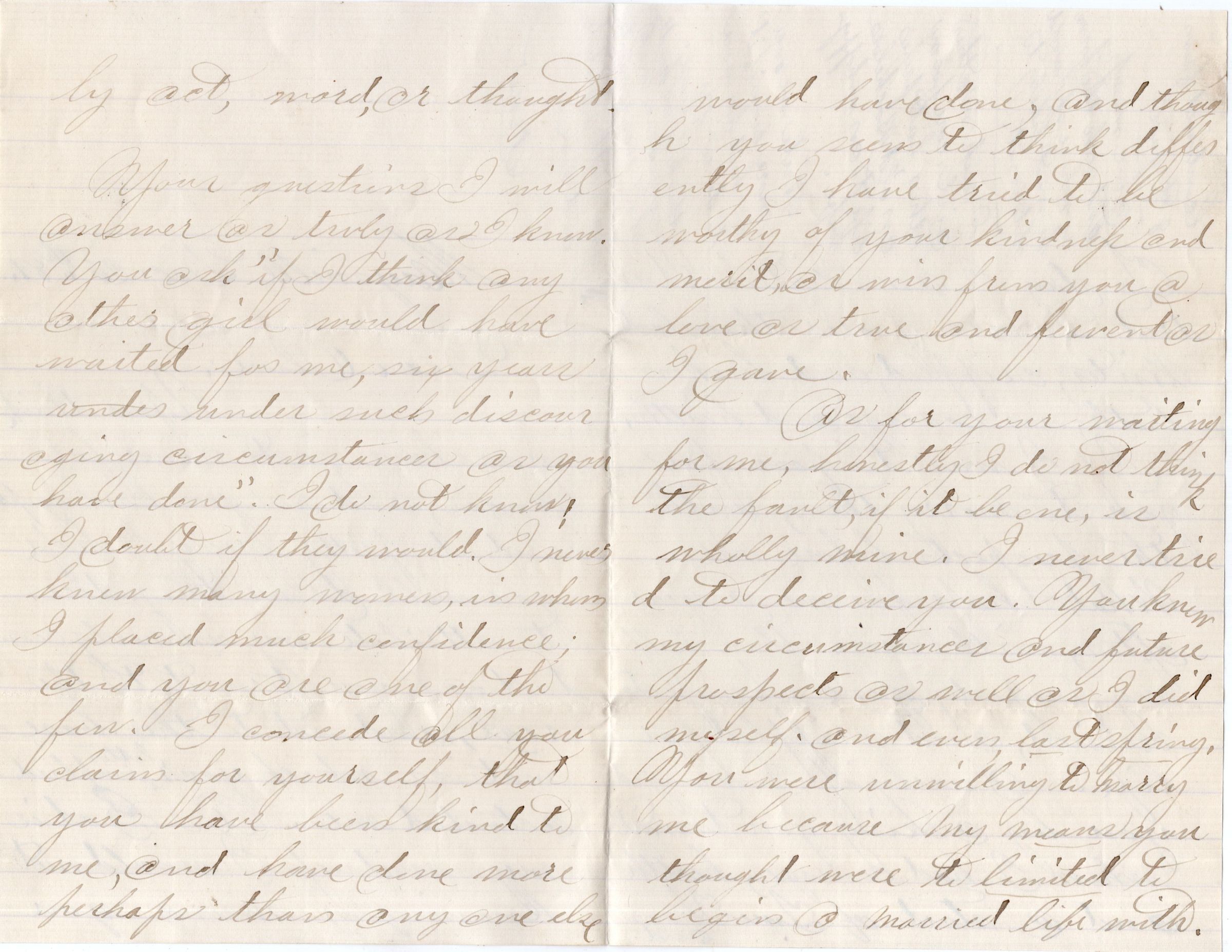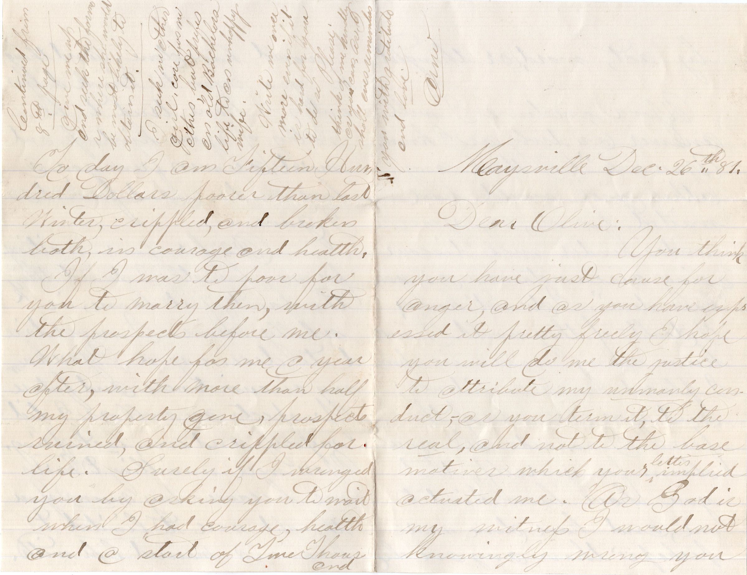Knight Collection - 1881 Letter; Dated December 26th; Written by Arno Knight to Olive Drinkwater; Arno is working in ColoradoRelationships