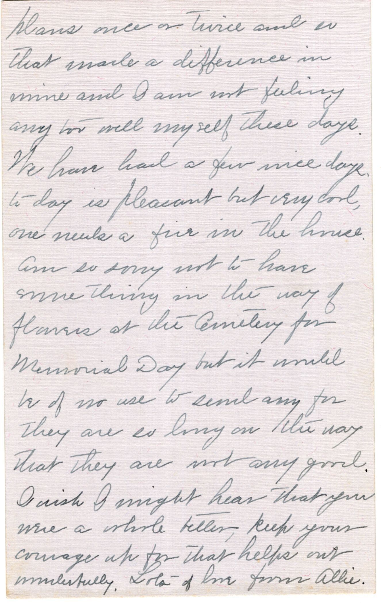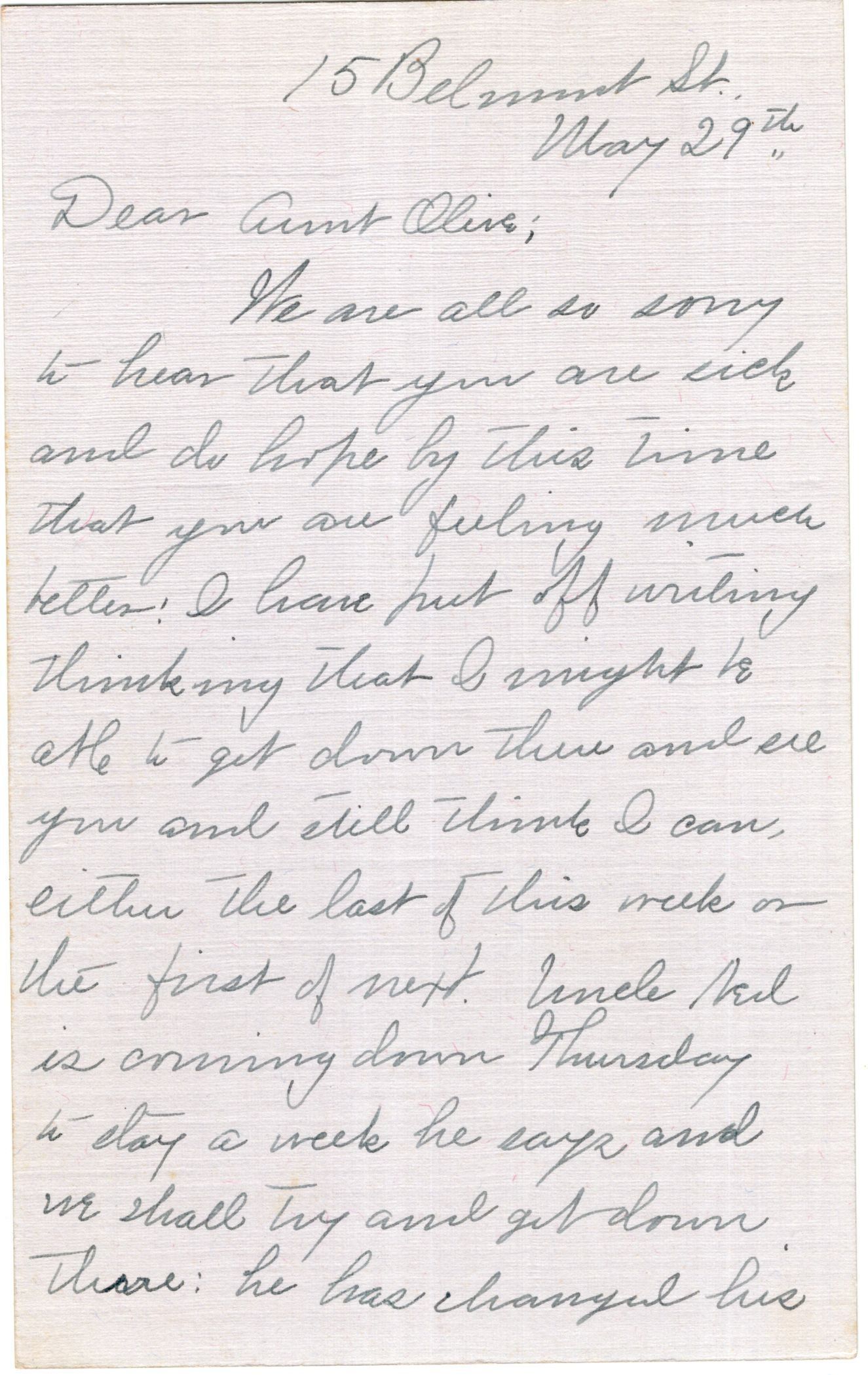 Knight Collection - 1923 Letter; Dated May 29; Written by Allie (Dyer) Smith to her aunt Olive Knight; Allie is the daughter of Fred and Emma Dyer, Olive's sister.Relationships