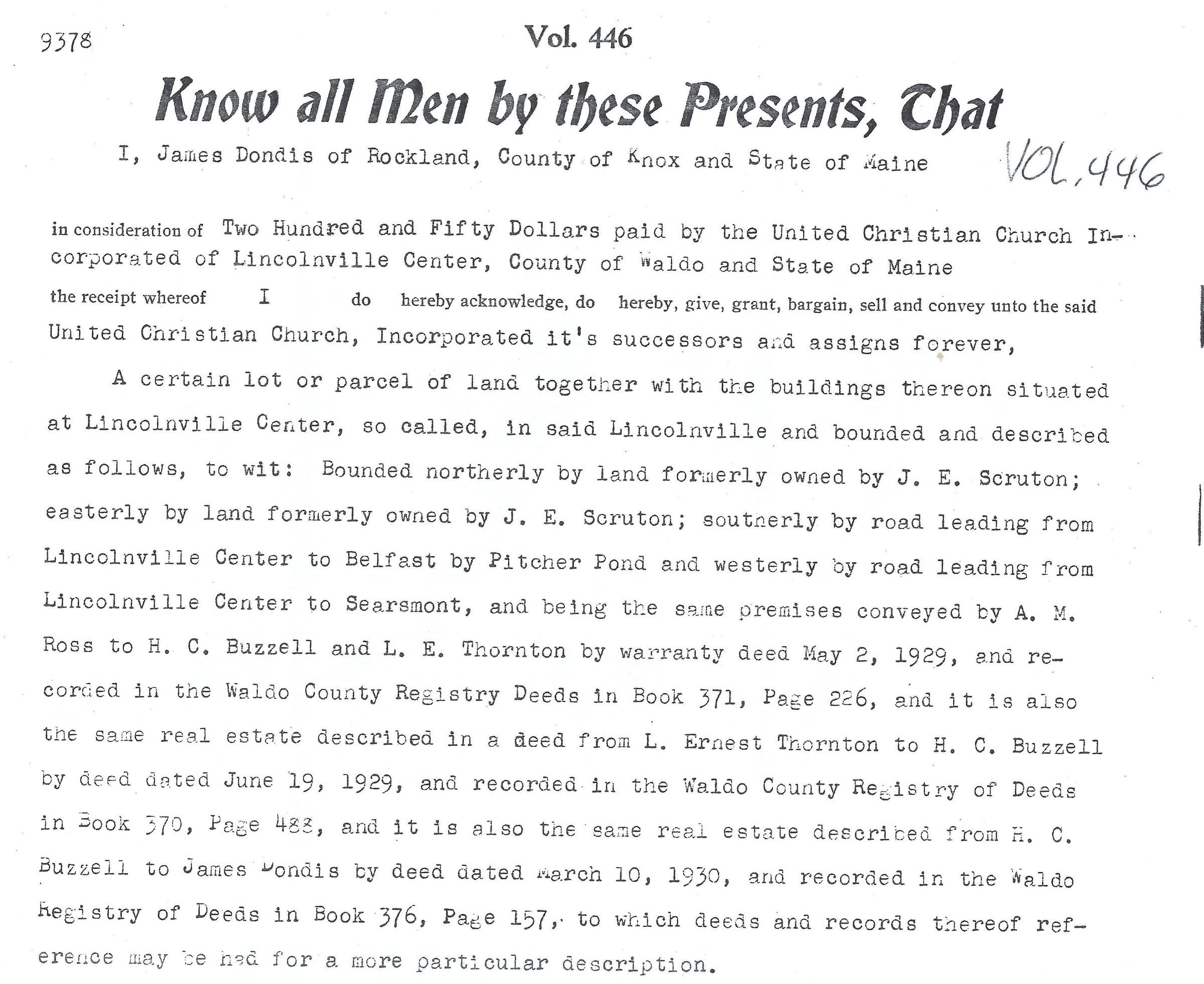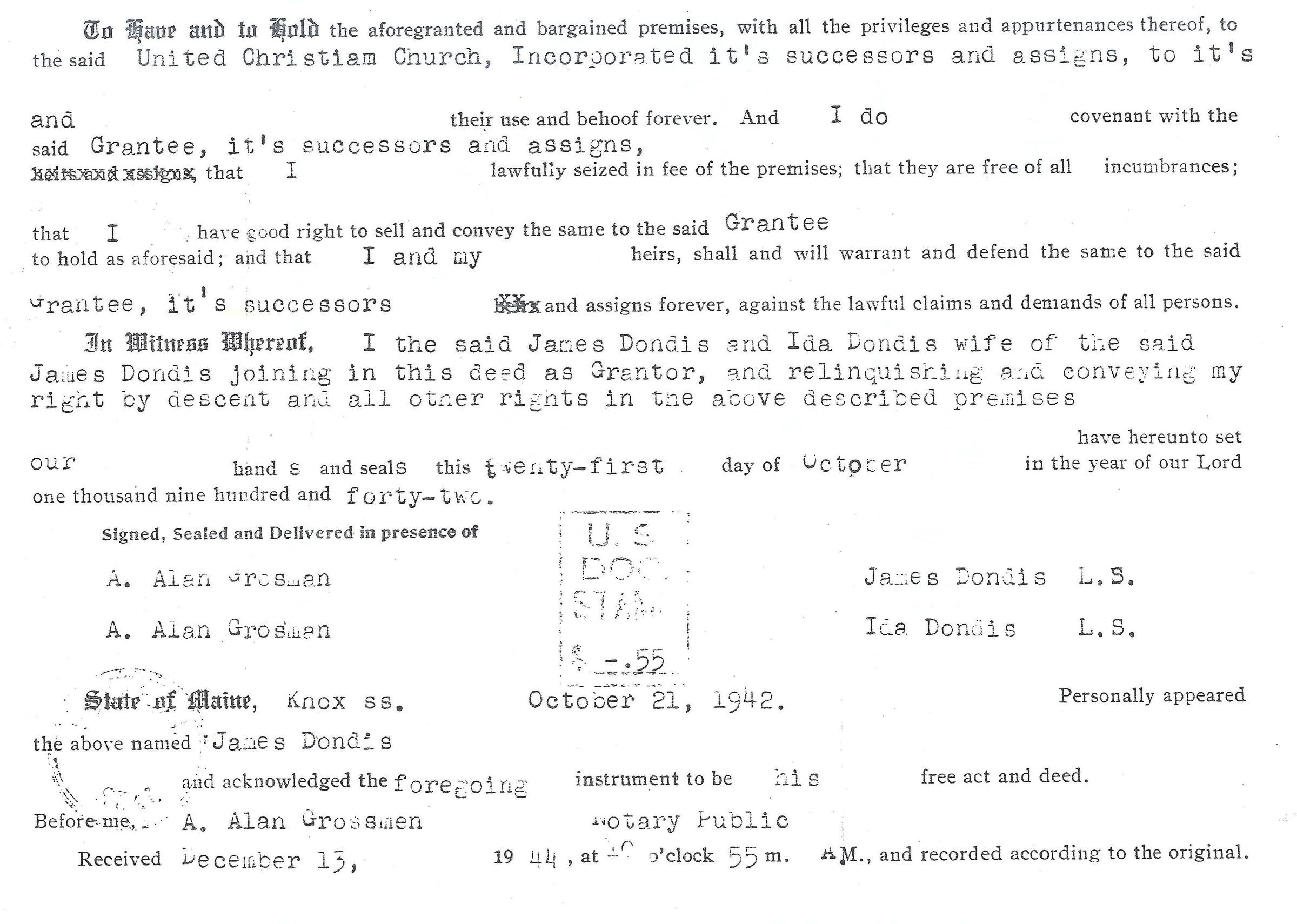 James and Ida Dondis deeds the United Christian Church Incorporated for $250 to the church