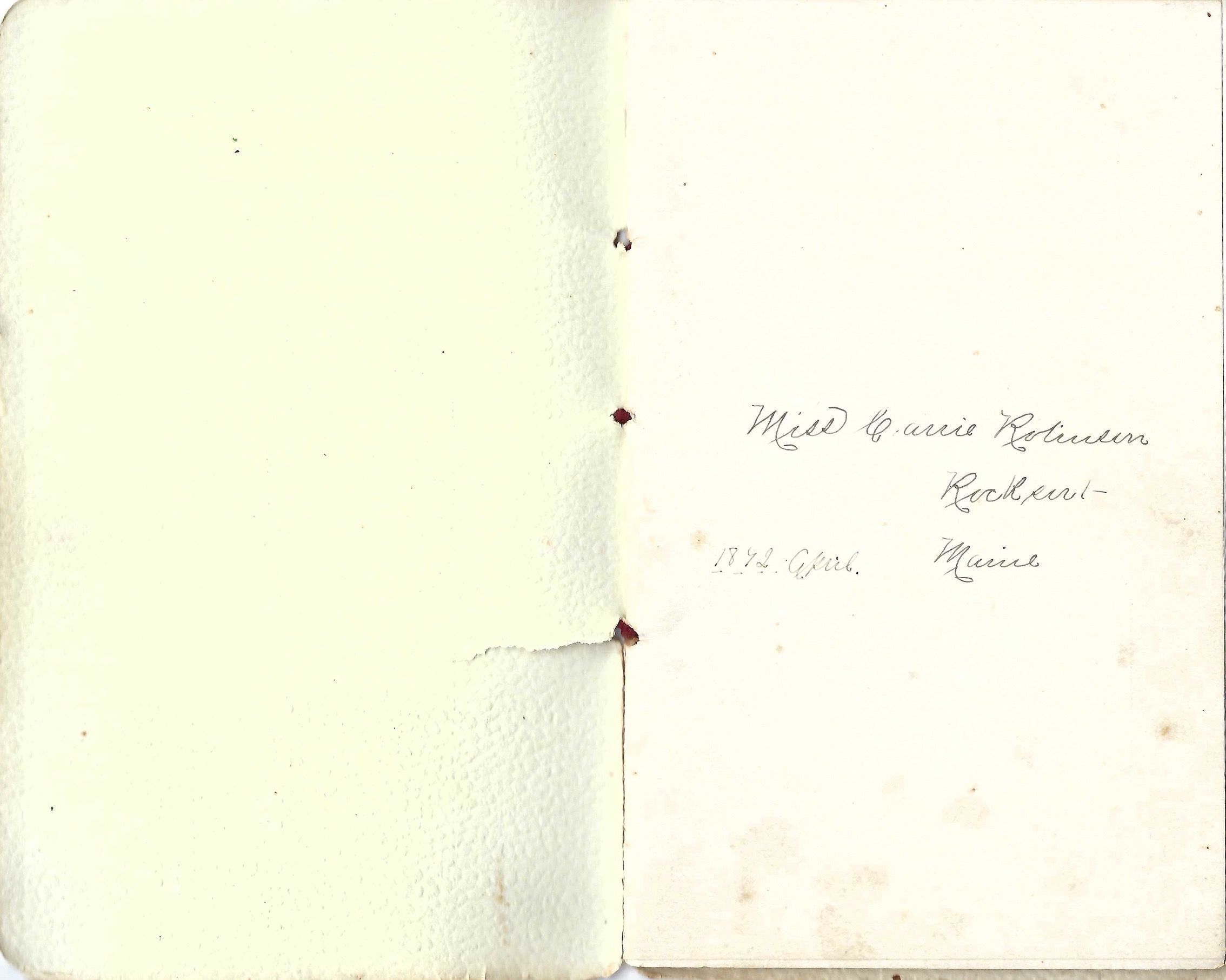 16 page souvenir booklet, inscribed "Miss Carrie Robinson Rockport, Maine April 1892"