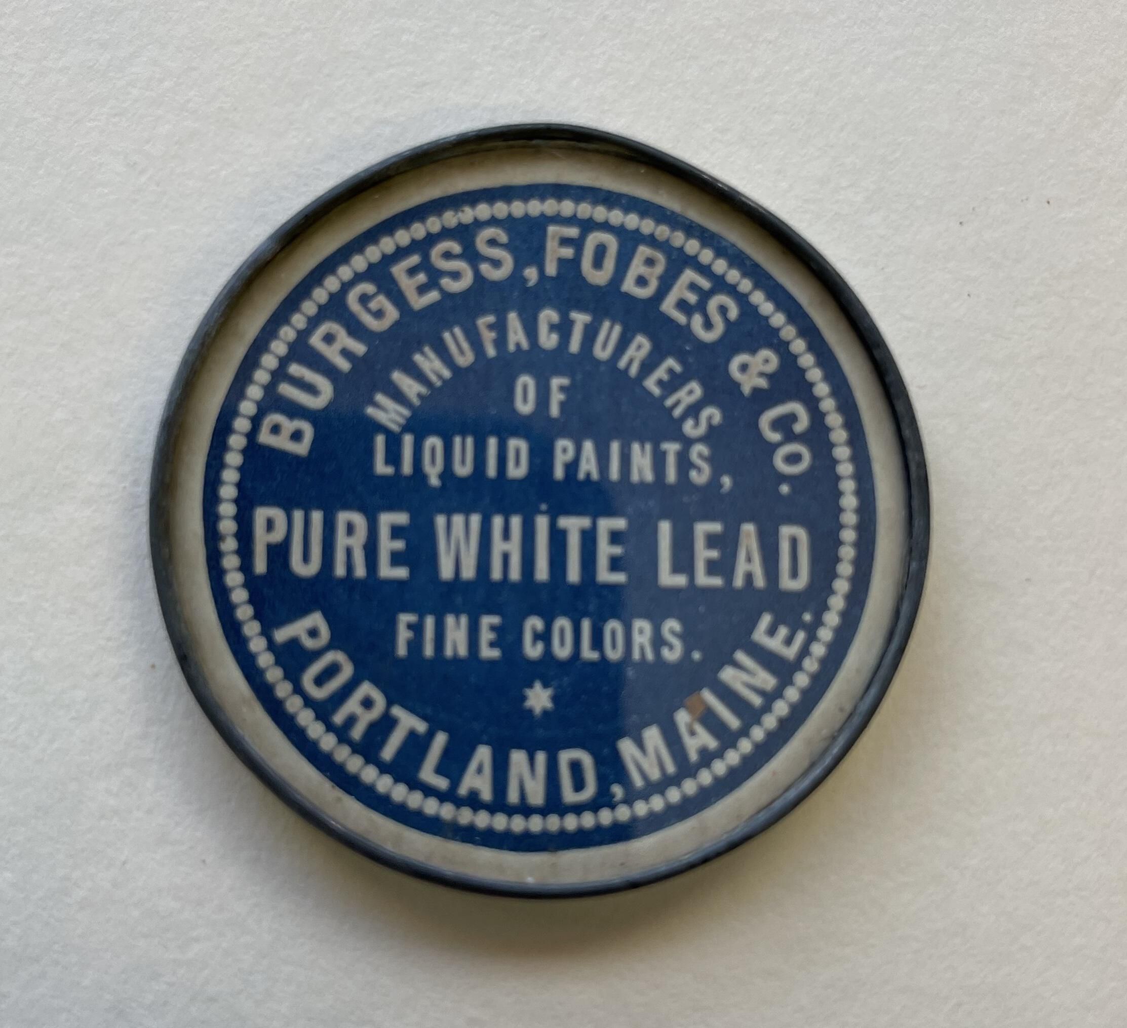 Burgess, Fobes & Co Pure White Paint advert button with mirror on back