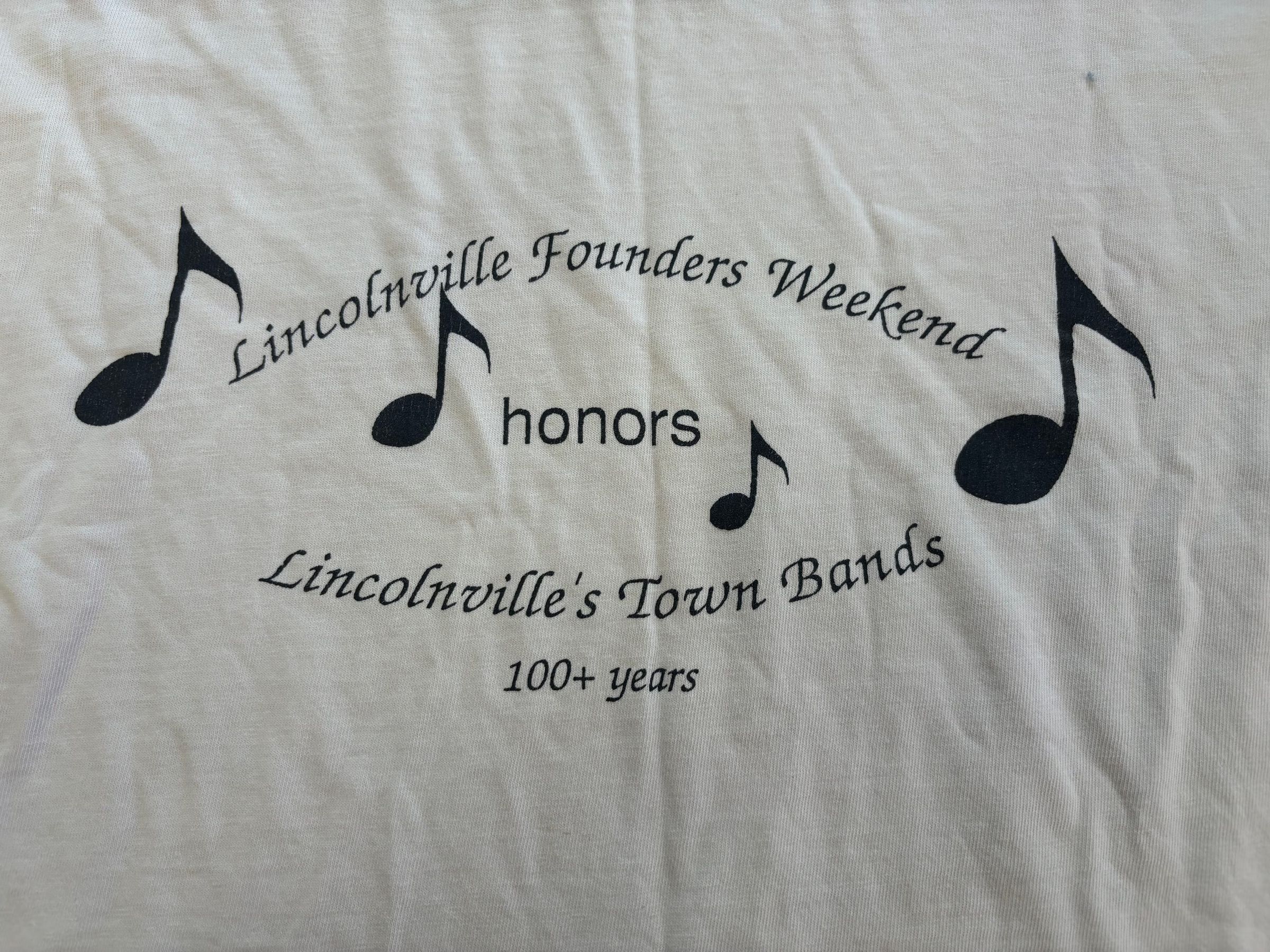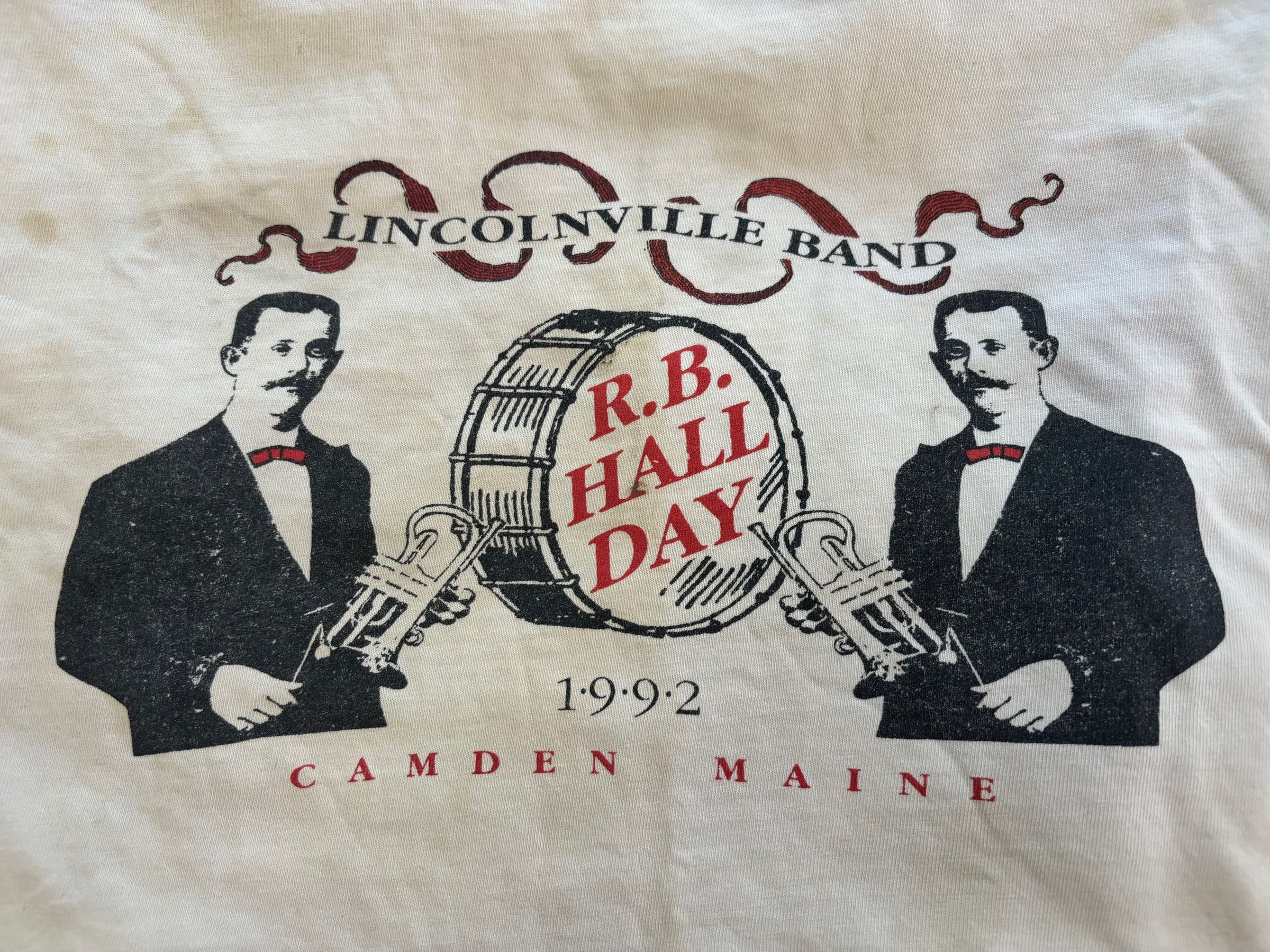 White T-Shirt with "Lincolnville Band R.B. Hall Day 1992" - Back says Lincolnville Founders Weekend honors Lincolnville's Town Bands 100+ yearsRelationships