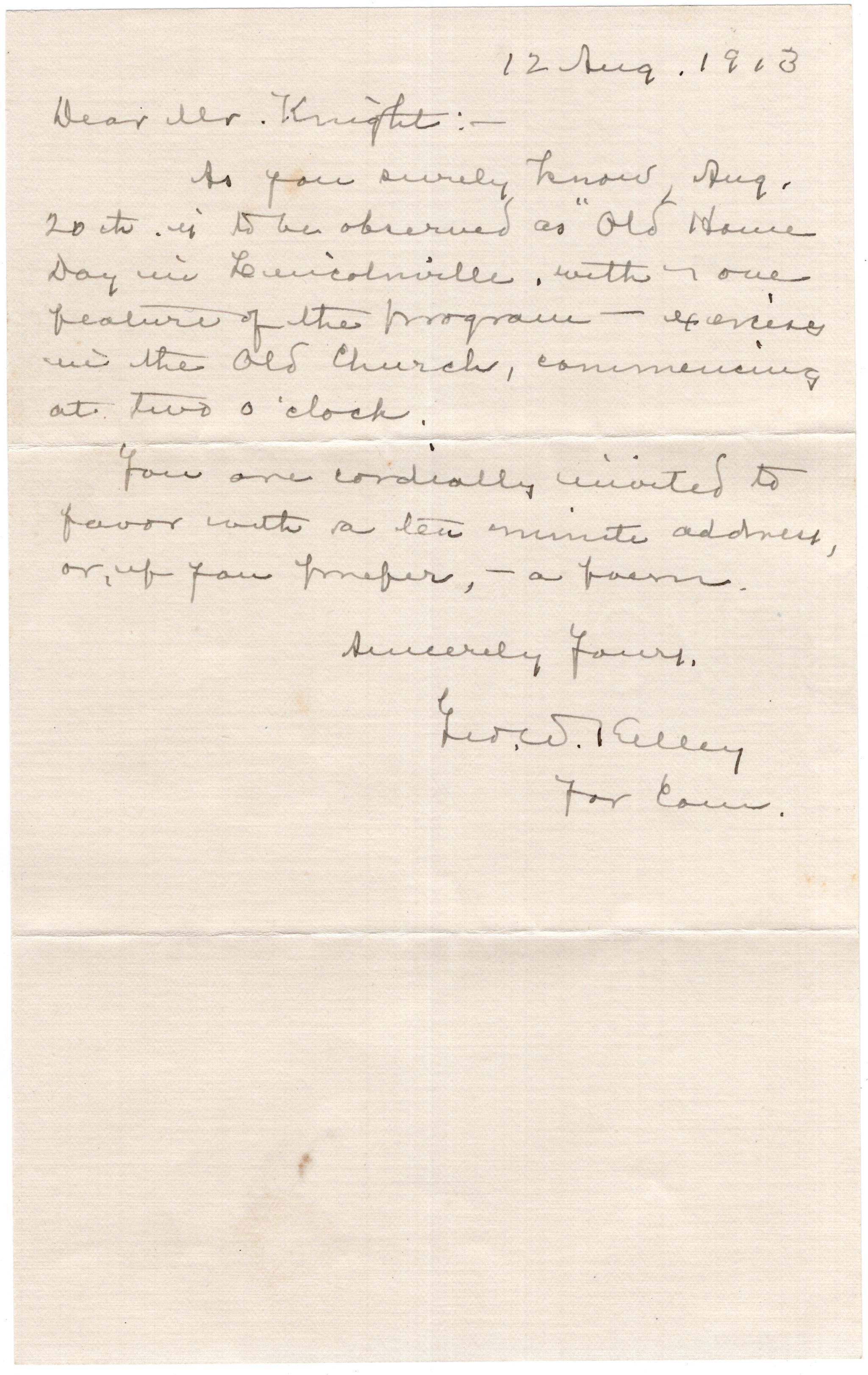 Knight Collection - 1913 Letter; Dated August 12; Written by Judge George Kelley to Arno KnightRelationships