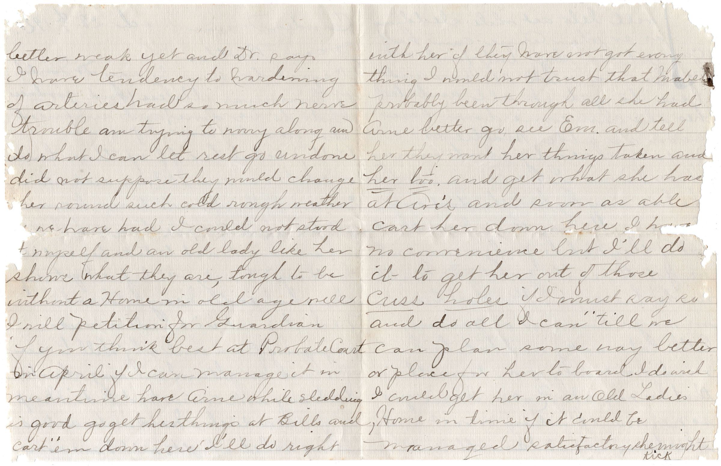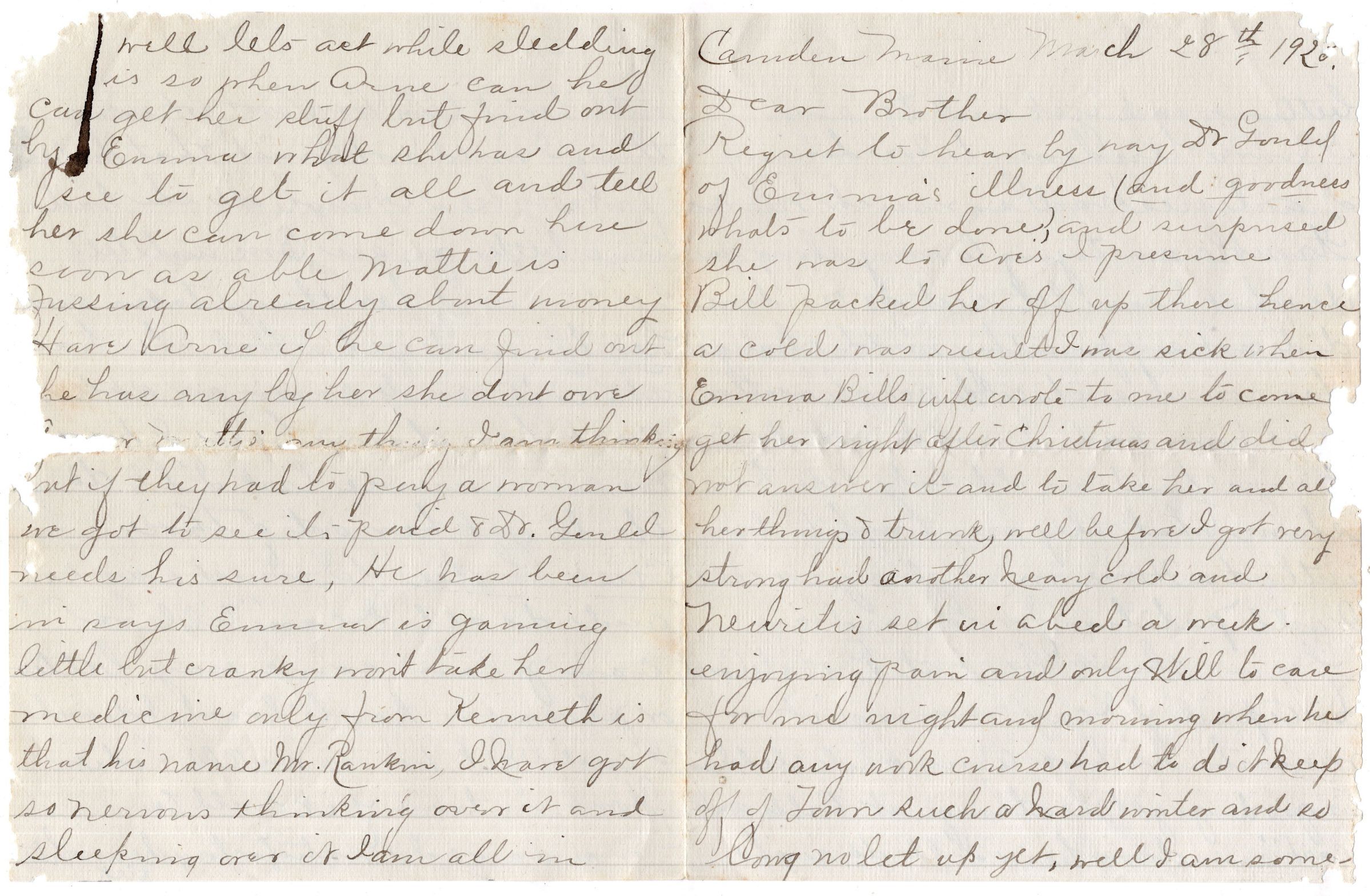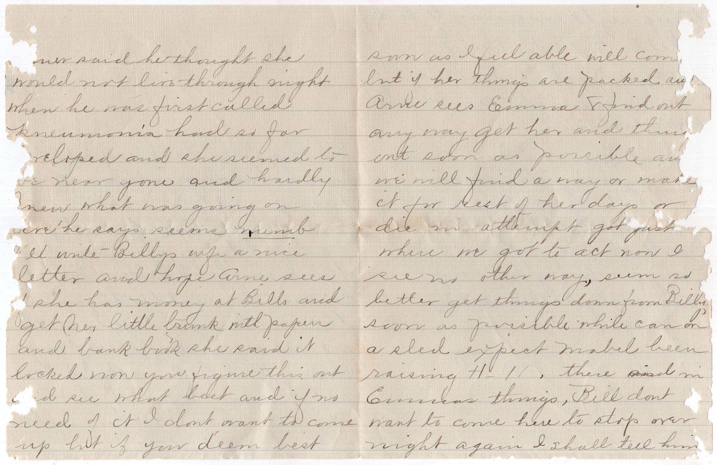 Knight Collection - 1917 Letter; Dated March 28; Written by Nellie Wescott to her brother Arno Knight; possibly in regards to their sister Emma Knight Cross
