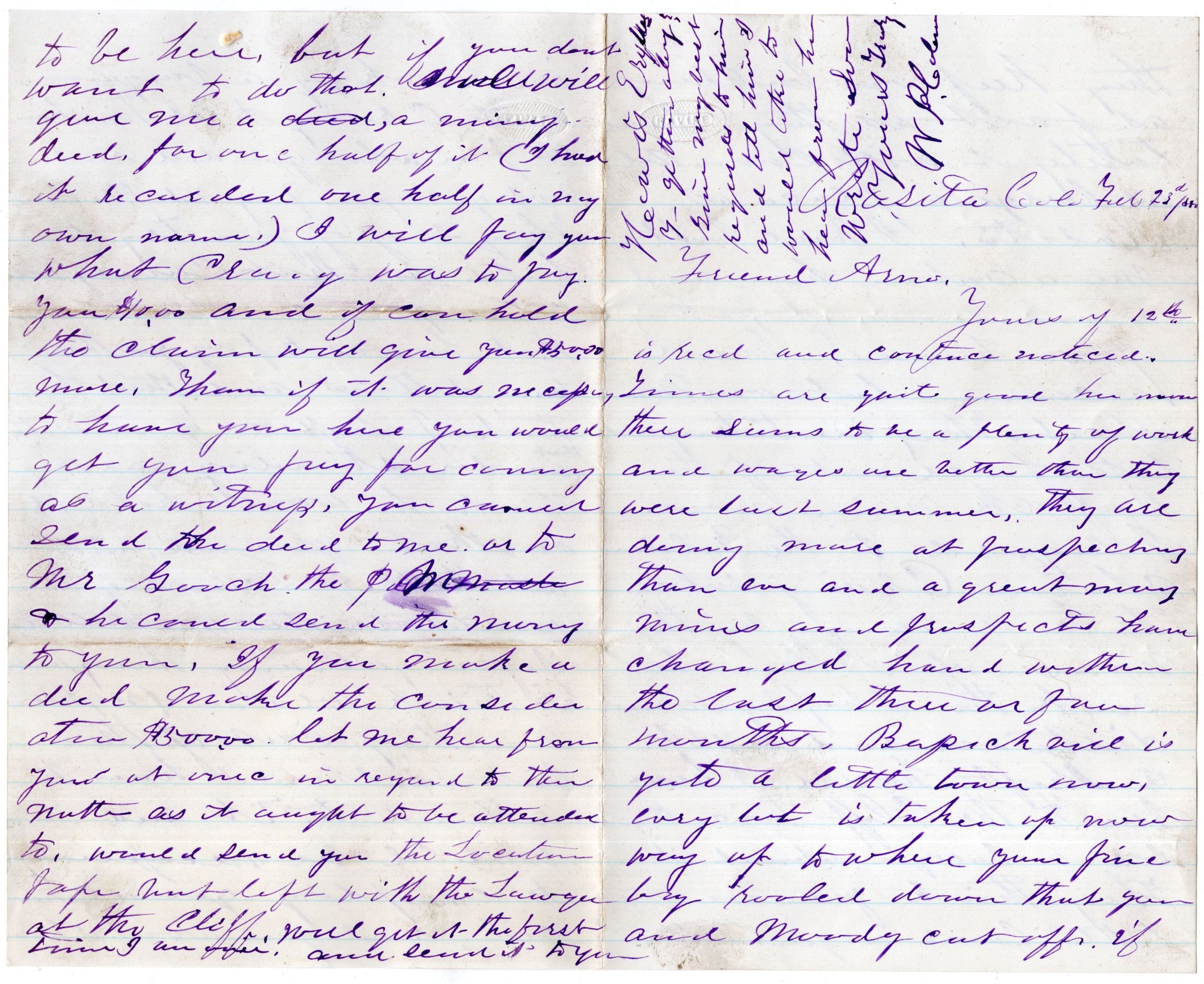 Knight Collection - 1880 Letter; Dated February 23rd; Written by W.P. Coleman to Arno Knight; Arno is working in ColoradoRelationships