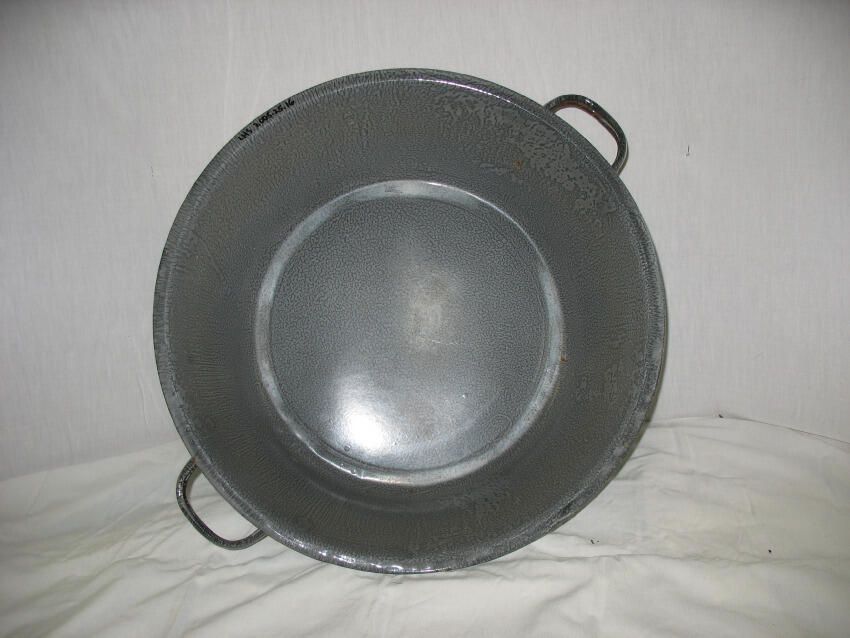 17 inch gray enamel bowl with 2 handles.