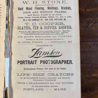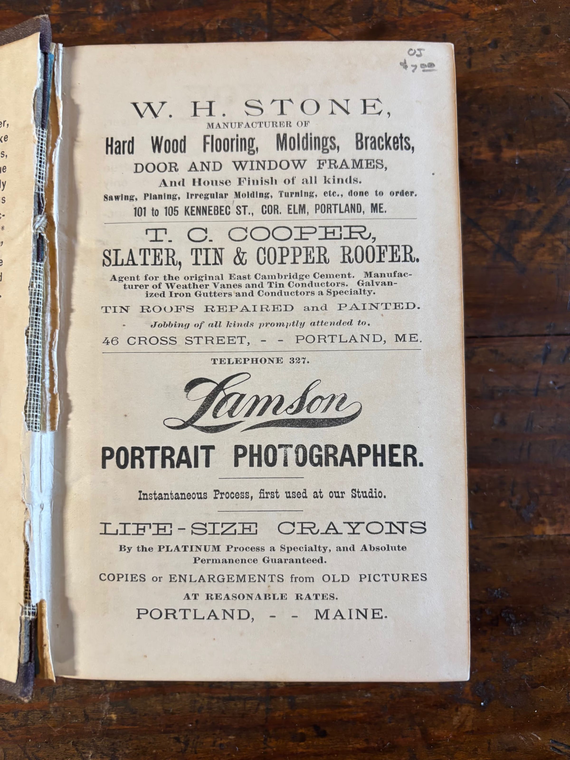 1885 Maine Register includes names of merchants, lime dealers, shoe shops, etc. in each county and town in Maine.
