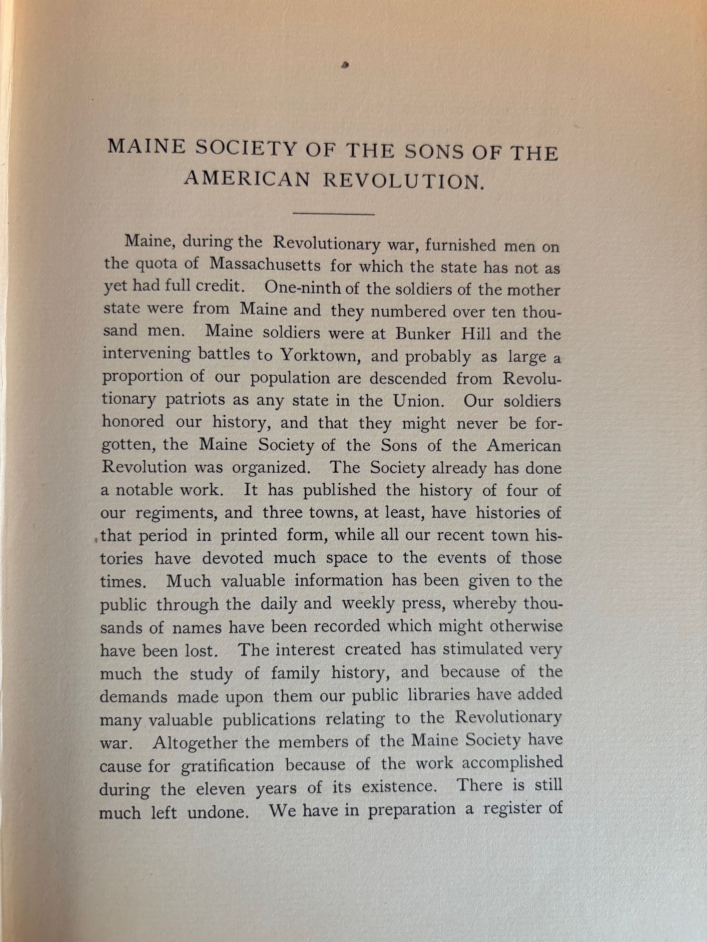 Maine Society of the Sons of the American Revolution. Contains rolls of members, constitution, by-laws, etc..