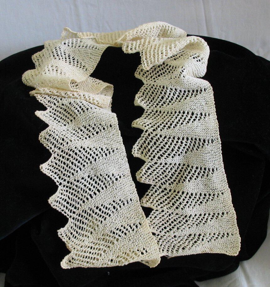 24 inch long by 2 inches wide section of crocheted lace very fine thread