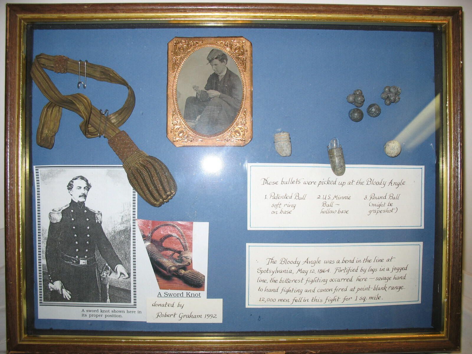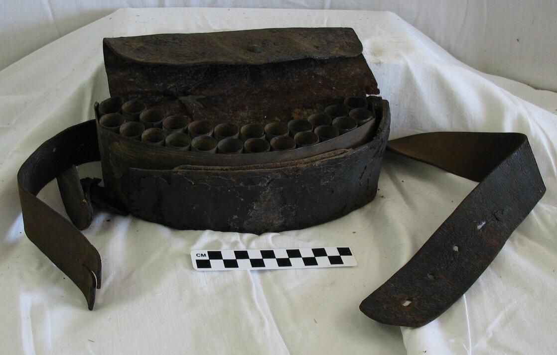 Leather container on a belt holding a tin box with 24 tin tubes for bullets An infantryman's cartridge belt used during the Civil War