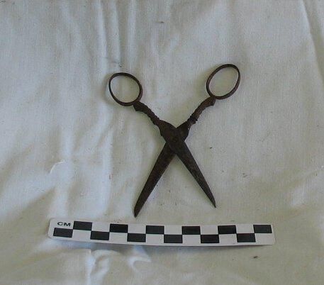 spurs, scissors and buttonhook used by Gideon Young during his service in the Civil War with the 2nd Maine Cavalry 1863 - 1865. Donated by Lucy Young Rankin