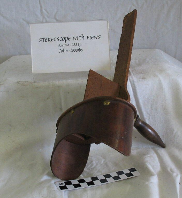 stereoscope with views donated in 1985 by Colin Coombs - viewing cards located on shelf in office