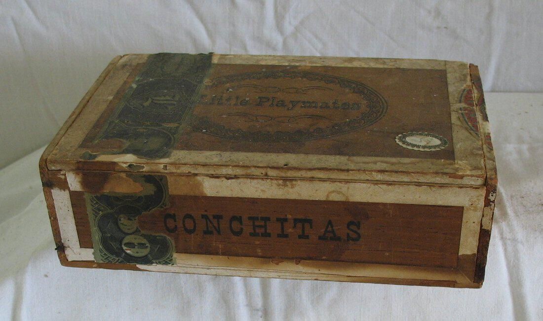 cigar box donated by Helen Young McLeod - lettering on box as follows: Little Playmates, conchitas, Colorado Maduro, factory No. 509, State of New York