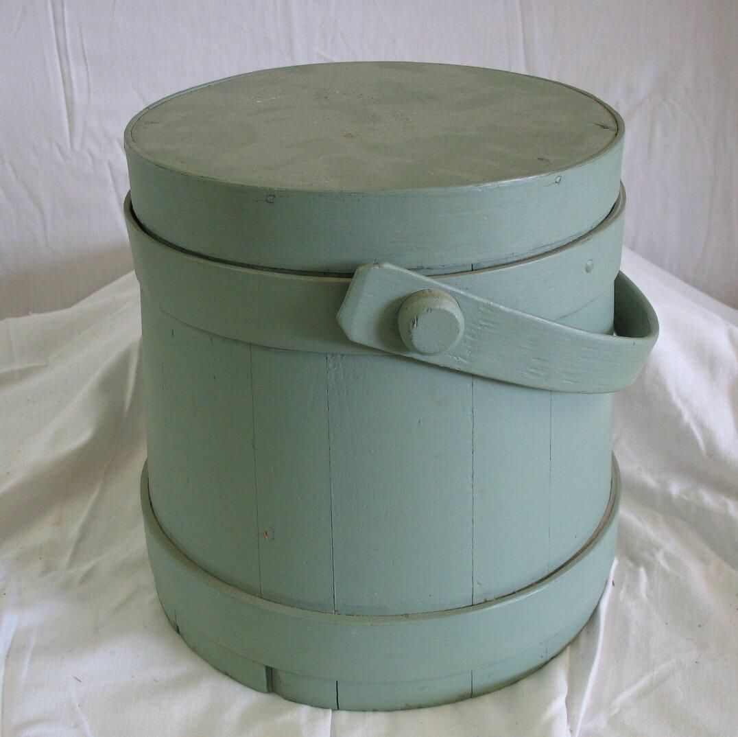 pale green wooden storage container with cover and handle - C. Wilder and Son printed on cover. Massachusetts
